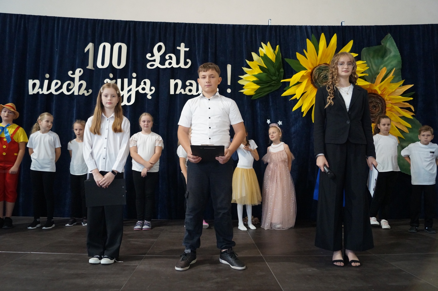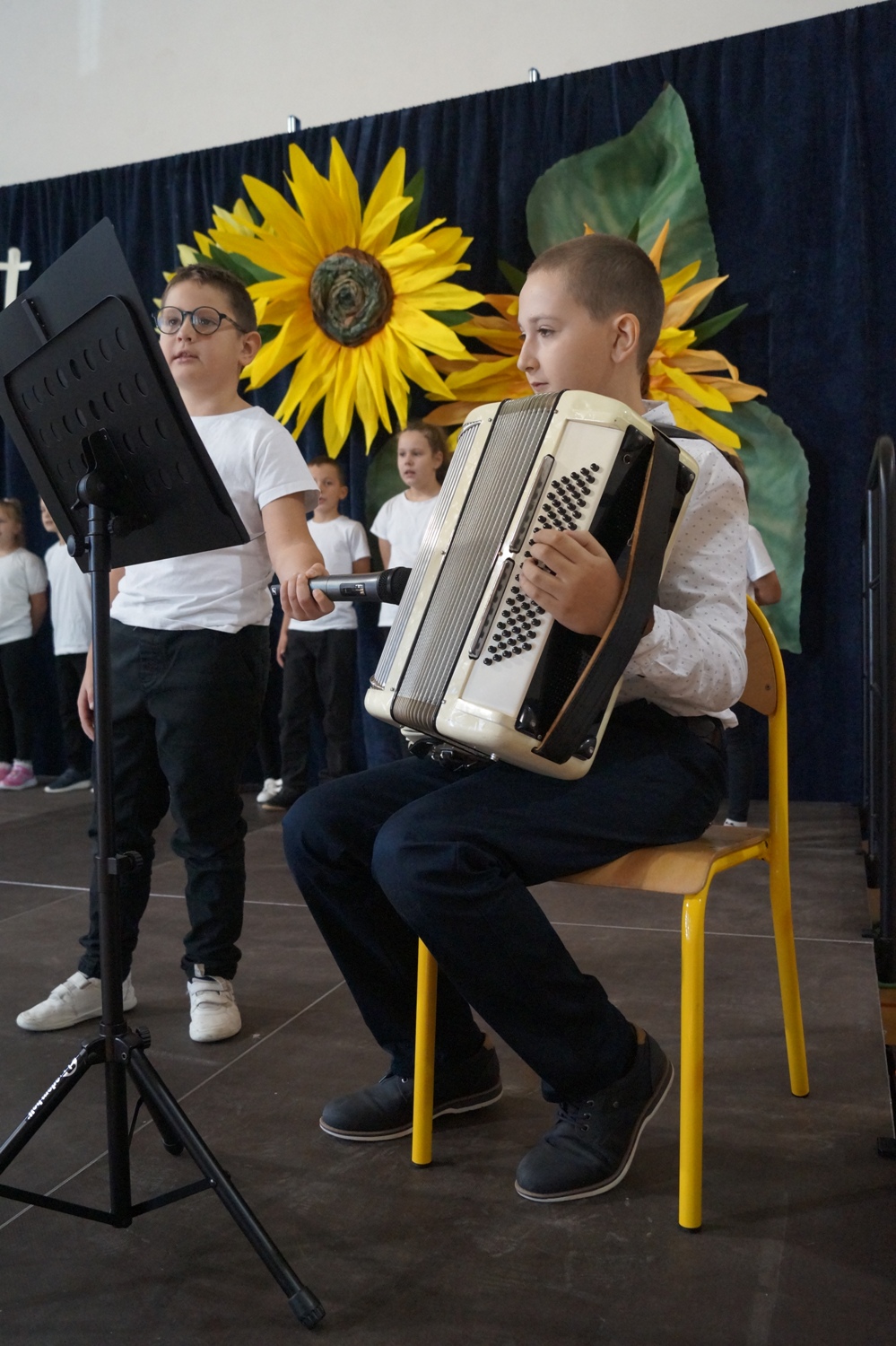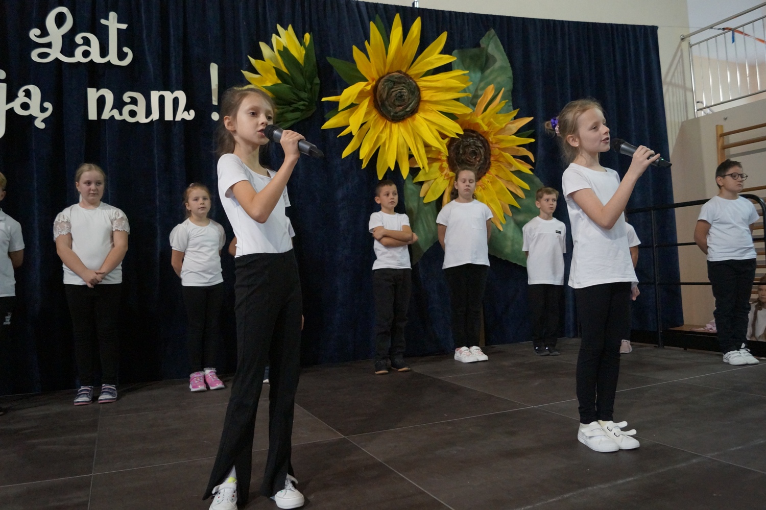 Podczas akademii panowała miła i radosna atmosfera. Był to czas pełen uśmiechów, wzruszeń oraz refleksji nad ważną rolą edukacji w naszym życiu. Na zakończenie uroczystości uczeń klasy VI zagrał na akordeonie melodie ,,Sto lat" oraz ,,Kwiaty kocham i Ciebie", a uczniowie wręczyli nauczycielom symboliczne kwiaty wyrażając w ten sposób wdzięczność za ich pracę i serce.
