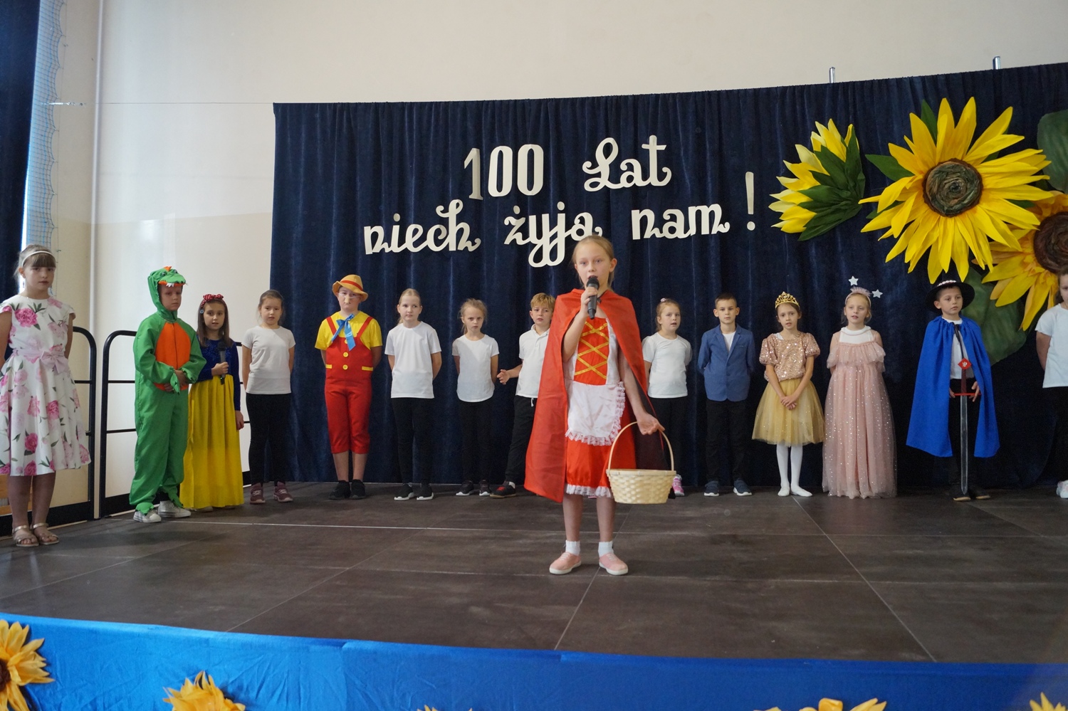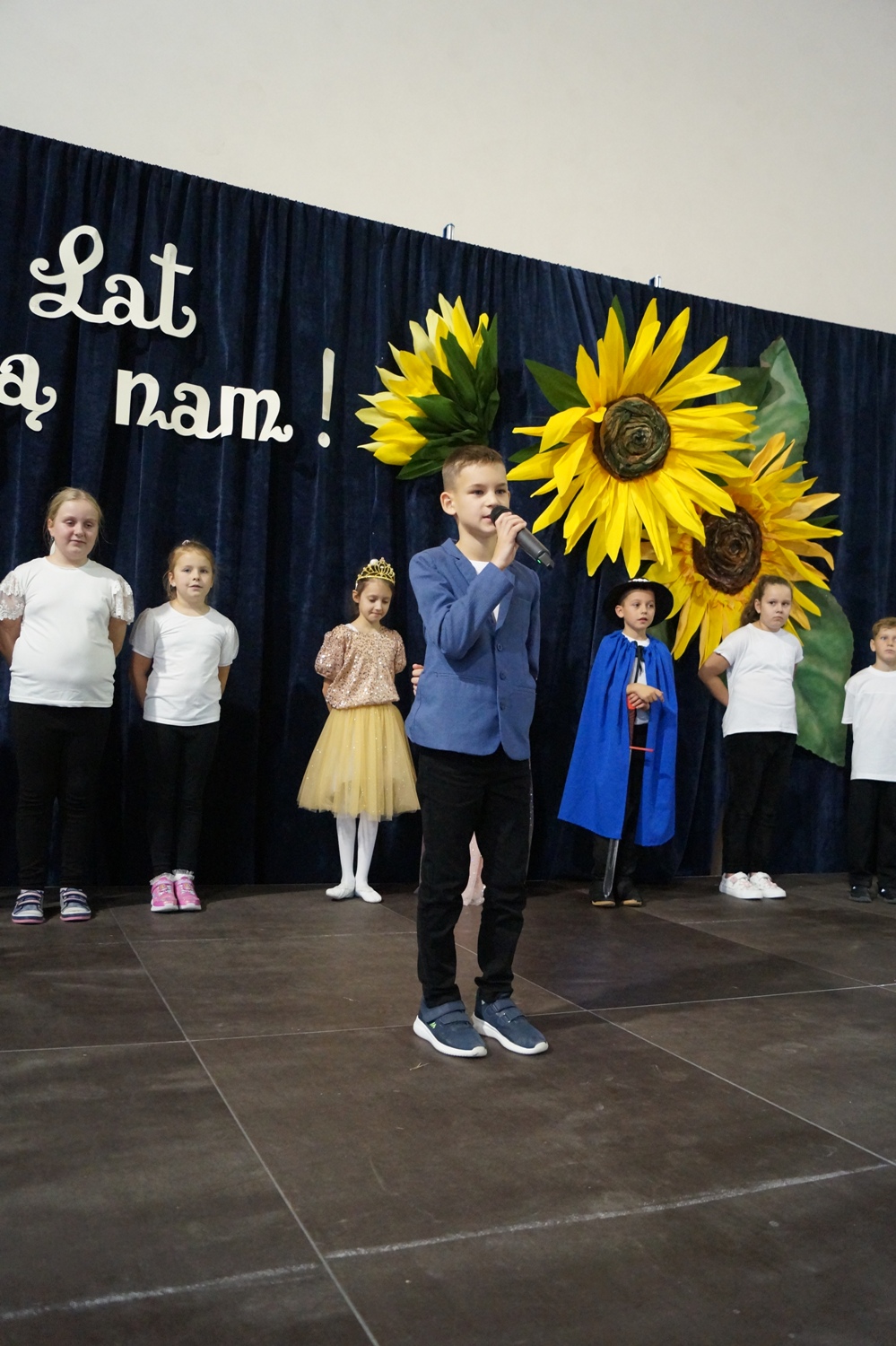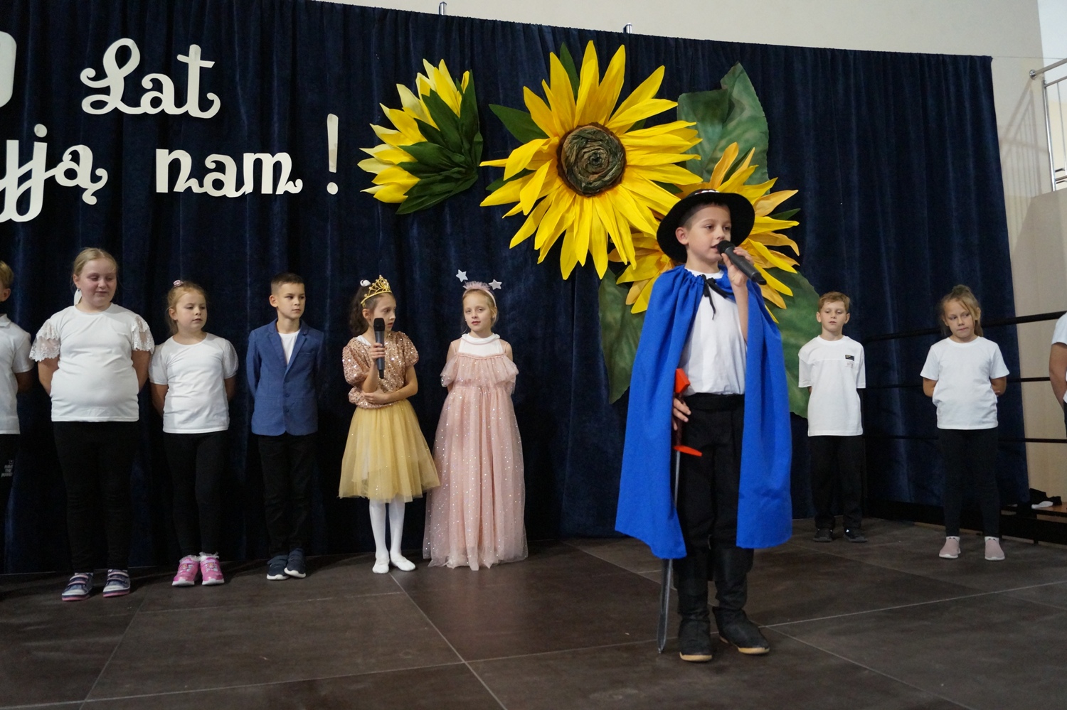 W dalszej części akademii uczniowie klasy III zaprezentowali przygotowany program artystyczny, w którym nie zabrakło humoru, piosenek, pięknego, żywiołowego tańca oraz ciepłych słów wdzięczności. Dzieci wystąpiły w bajkowych kostiumach, wcielając się w ulubione postacie z bajek, które spotkały się w jednej szkole. Na scenie pojawiły się m.in. Czerwony Kapturek, Kopciuszek, Dobra Wróżka, Złota Rybka, Królewna Śnieżka, Pinokio, Smok Wawelski, Kot w butach.
