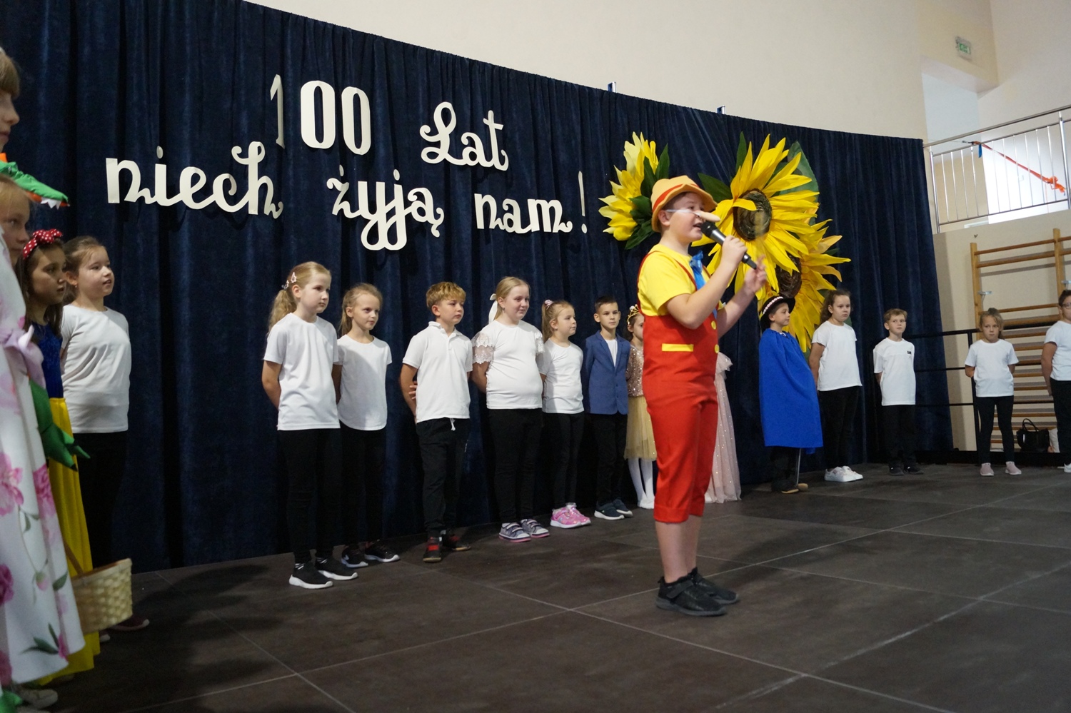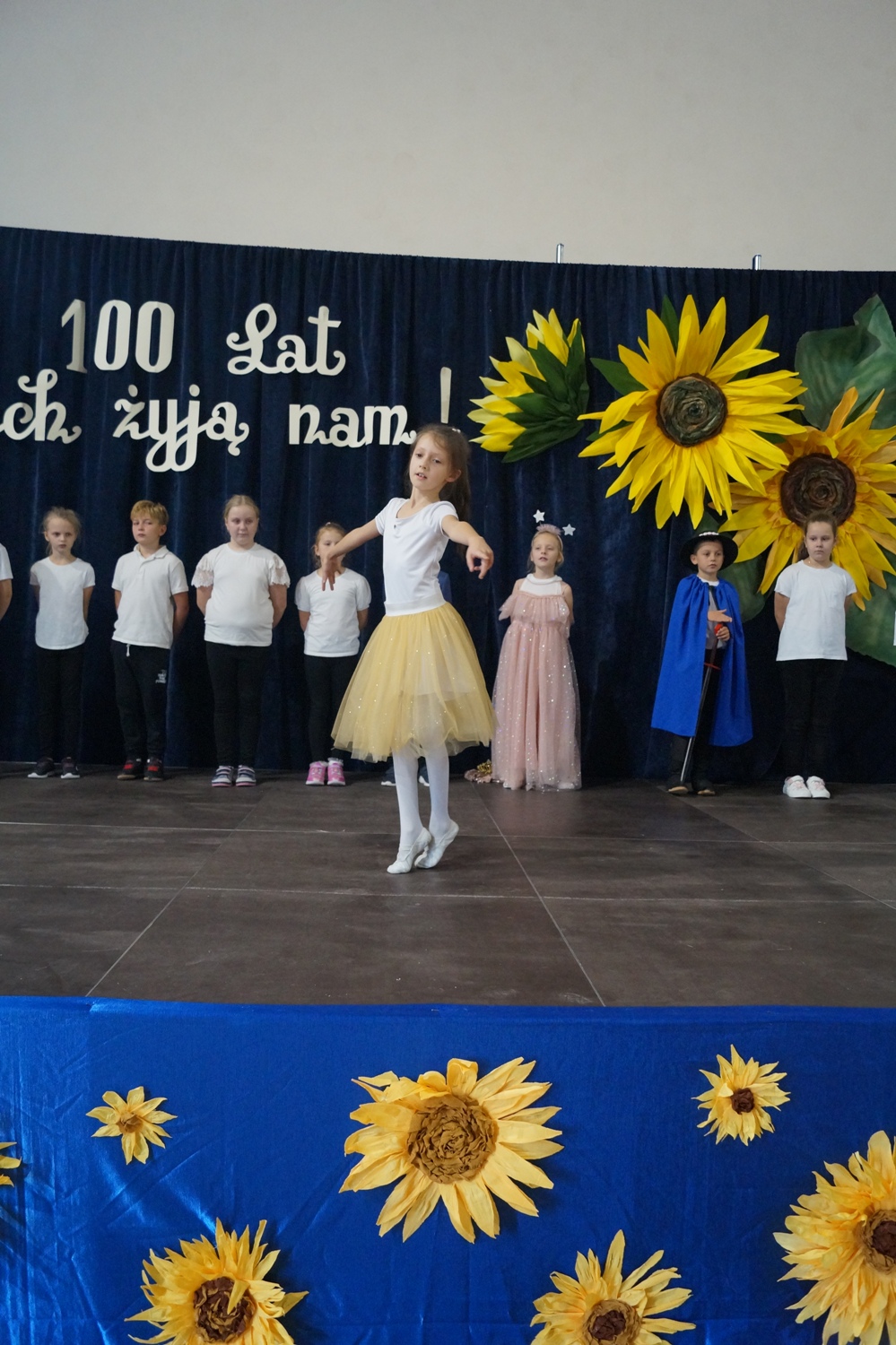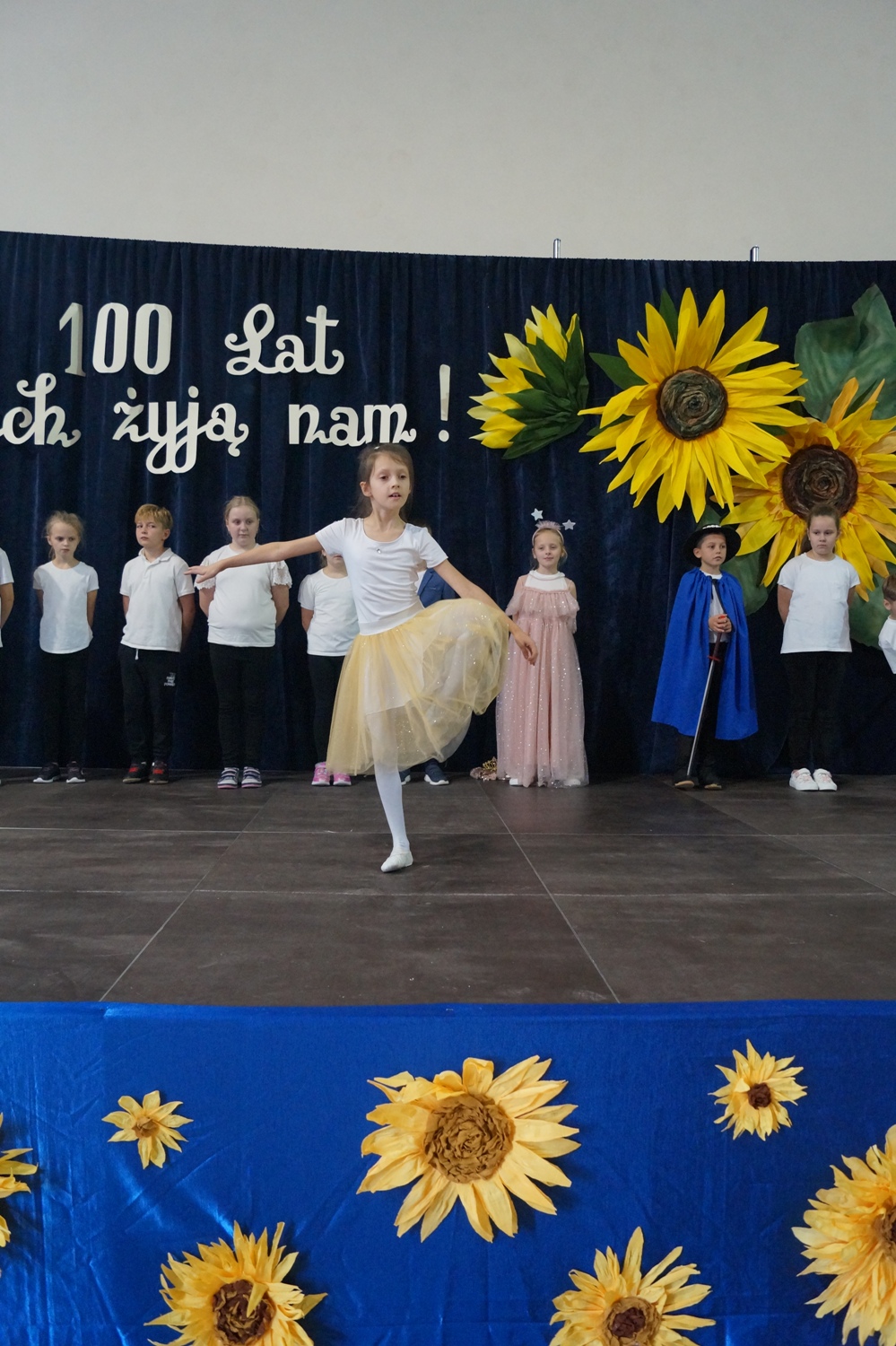 W dalszej części akademii uczniowie klasy III zaprezentowali przygotowany program artystyczny, w którym nie zabrakło humoru, piosenek, pięknego, żywiołowego tańca oraz ciepłych słów wdzięczności. Dzieci wystąpiły w bajkowych kostiumach, wcielając się w ulubione postacie z bajek, które spotkały się w jednej szkole. Na scenie pojawiły się m.in. Czerwony Kapturek, Kopciuszek, Dobra Wróżka, Złota Rybka, Królewna Śnieżka, Pinokio, Smok Wawelski, Kot w butach.