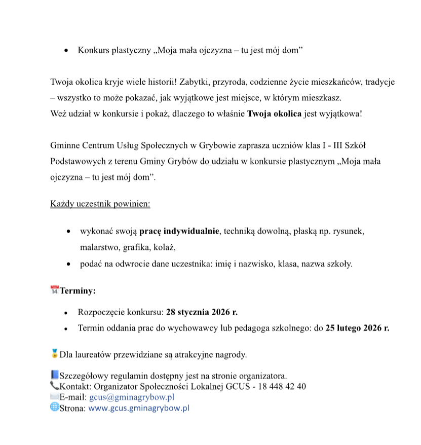 Konkurs plastyczny „Moja mała ojczyzna – tu jest mój dom”