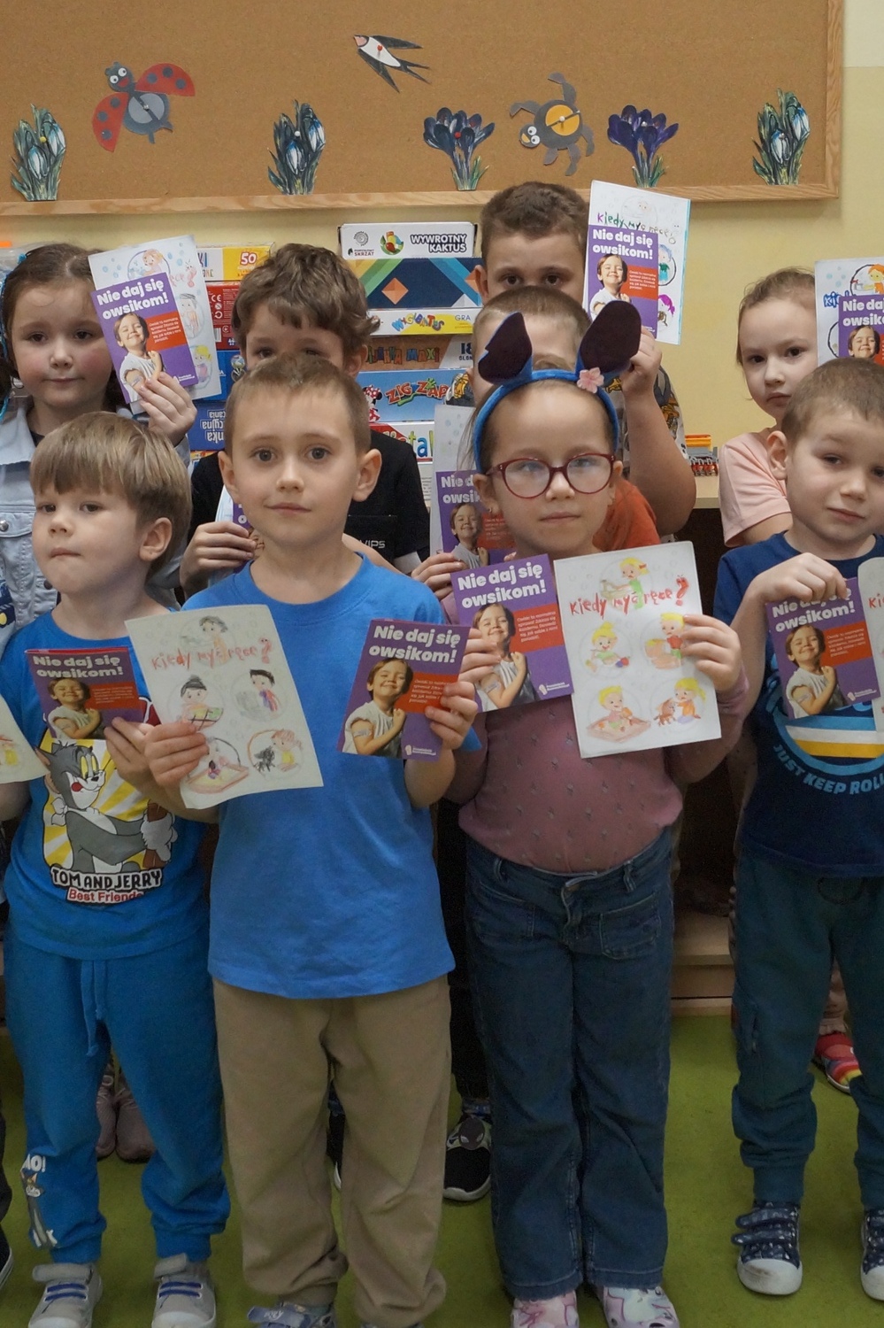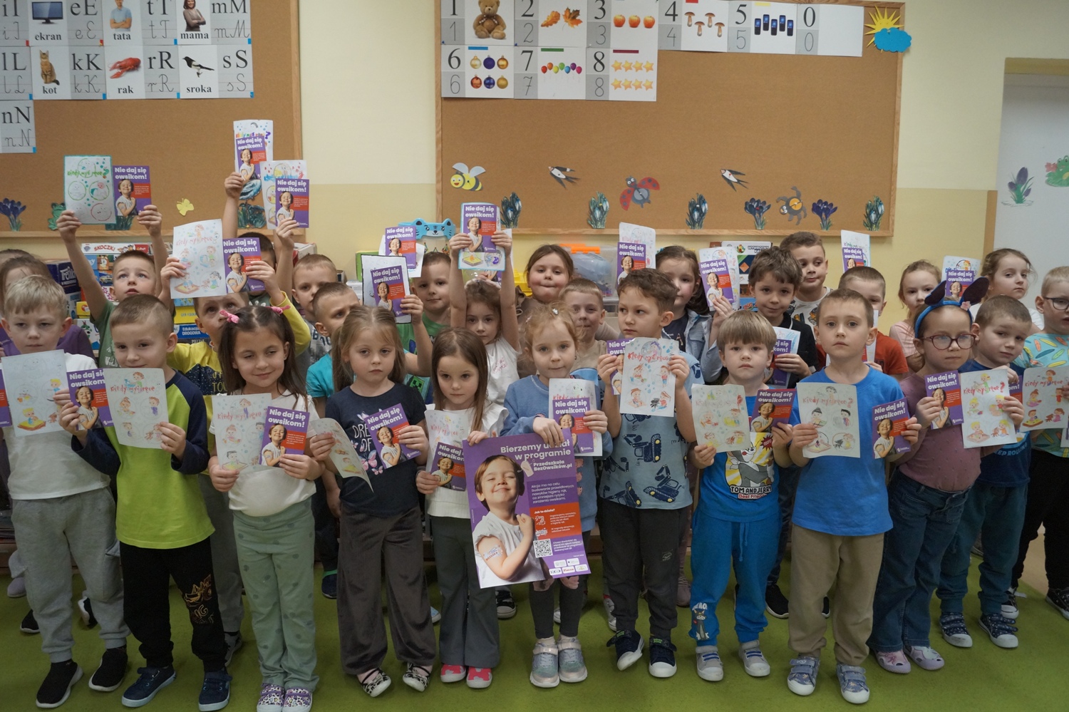Bierzemy udział w programie: Przedszkola bez owsików. Akcja ma na celu budowanie prawidłowych nawyków higieny rąk, co zmniejsza ryzyko zarażenia się owsikami. Każda grupa przedszkola uczestniczyła w warsztatach, podczas których dzieci nauczyły się jak dbać o higienę rąk. W nagrodę dzieci otrzymały odlotowe tatuaże oraz mydło w płynie dla całej grupy. Rodzicom zostały przekazane broszury z przydatnymi informacjami o owsikach oraz sposobami radzenia sobie z nimi.