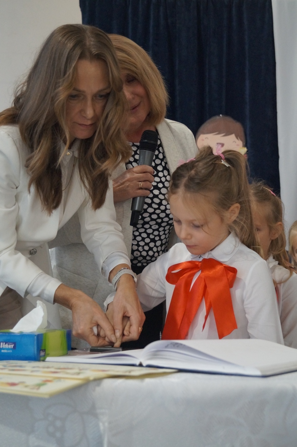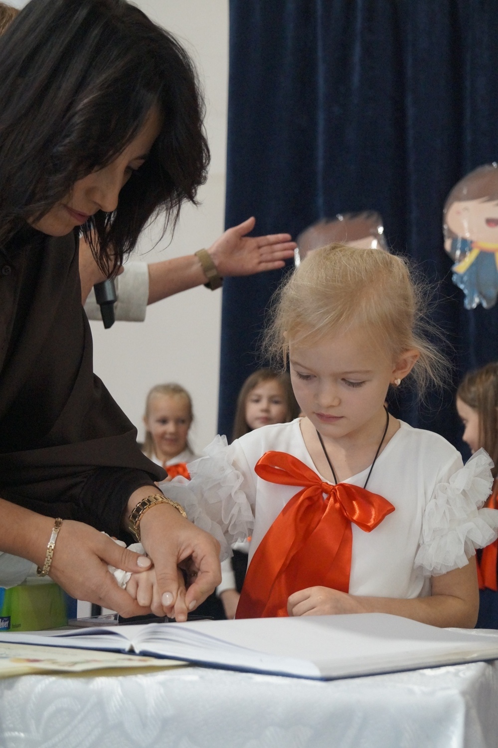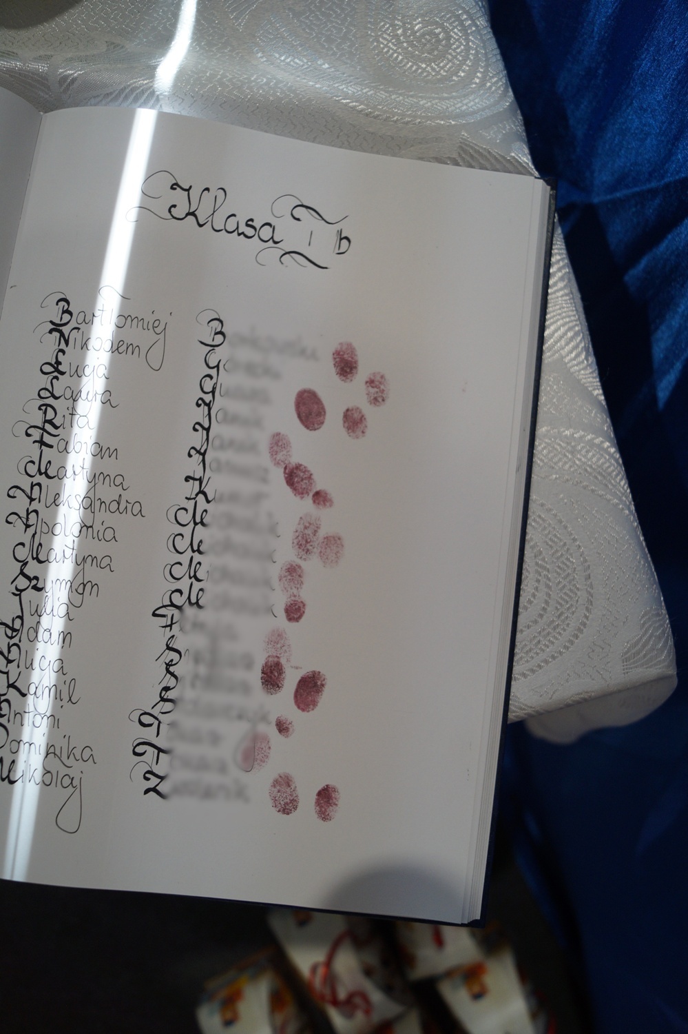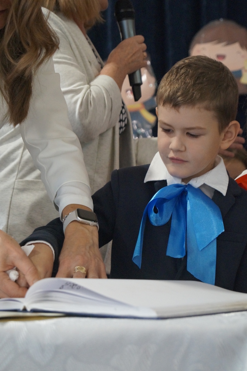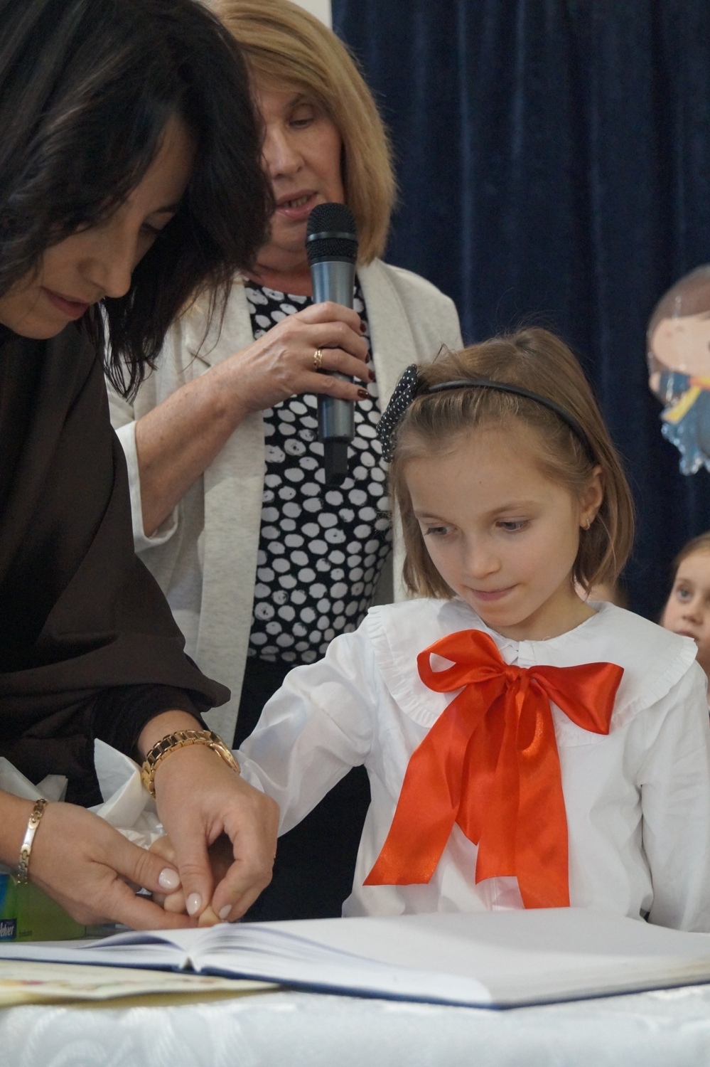 To wielkie wydarzenie rozpoczęła p. Dyrektor Urszula Ząber witając gości: Wójta Gminy Grybów p. Jacka Migacza, Grono Pedagogiczne, rodziców, społeczność szkolną oraz głównych bohaterów - Pierwszoklasistów. Obie klasy zaprezentowały swoje talenty recytatorskie, umiejętności wokalne i na sam koniec nie zabrakło żywiołowego tańca. Po tak obszernym i wymagającym zaprezentowaniu się z wielką radością dzieci zostały przyjęte do grona Uczniów Naszej Szkoły. Po uroczystym Ślubowaniu i Pasowaniu zaproszeni goście, rodzice i dzieci dokonali wspólnego sadzenia drzewa - symbolizującego Ich pobyt w szkole. Następnie udali się do sal i zasiedli z rodzicami do słodkiego poczęstunku.