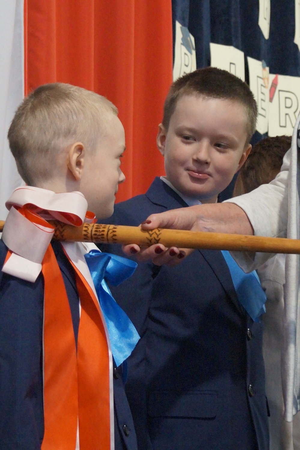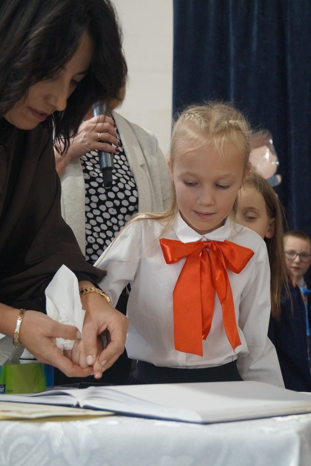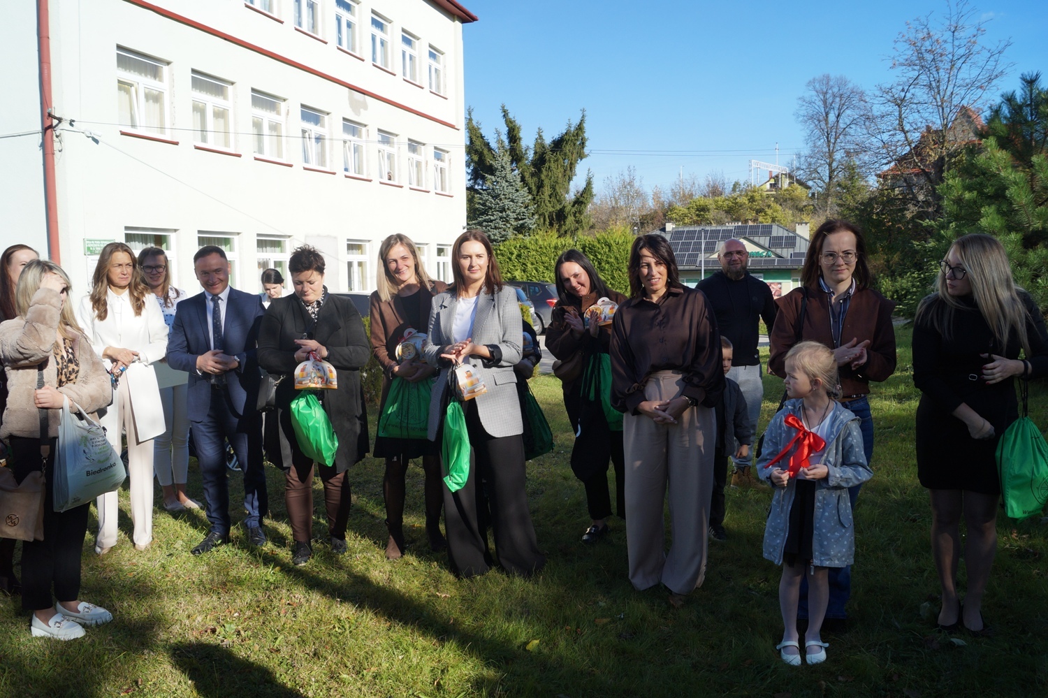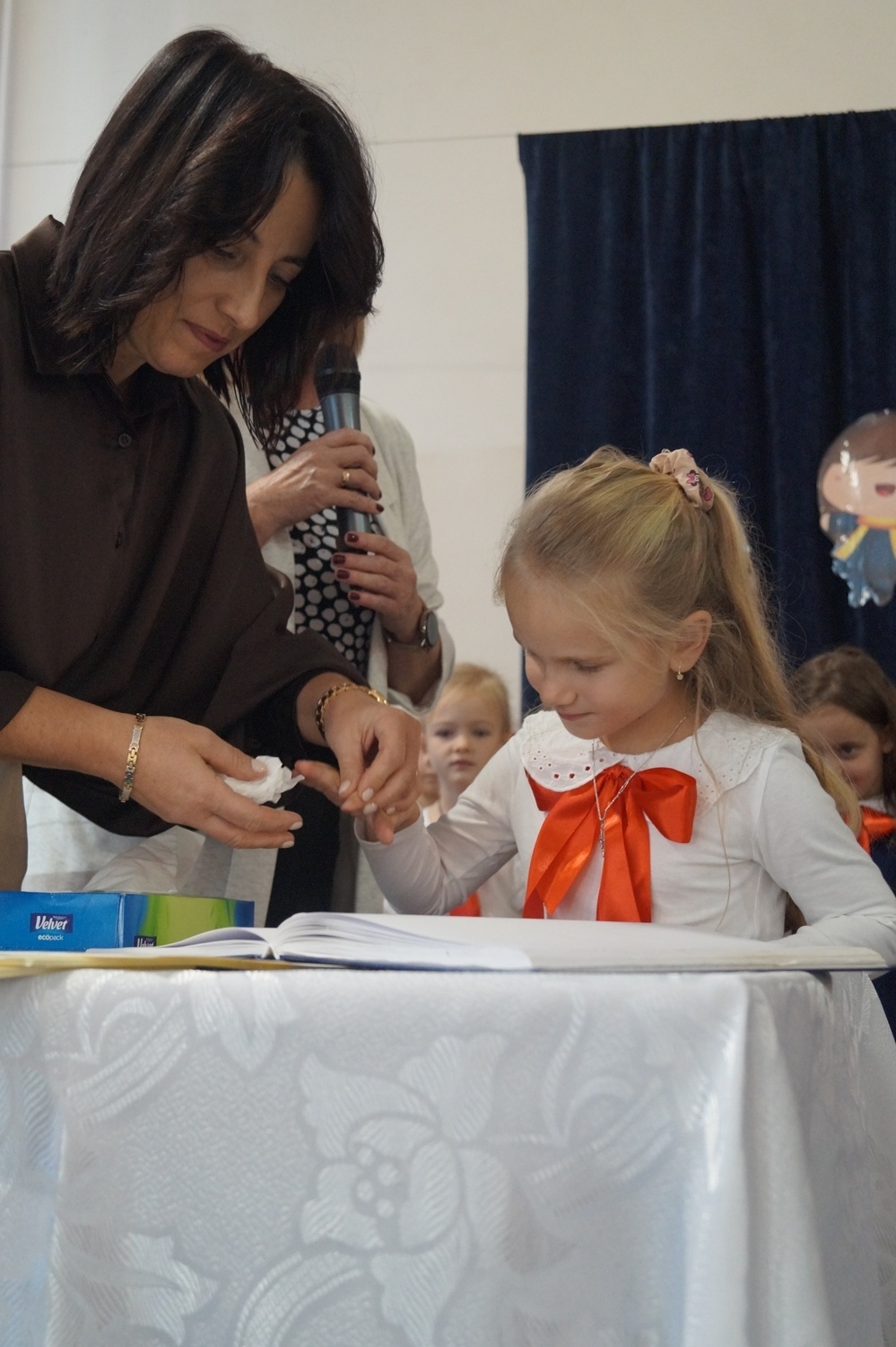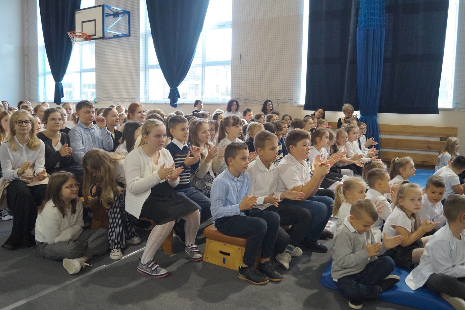 To wielkie wydarzenie rozpoczęła p. Dyrektor Urszula Ząber witając gości: Wójta Gminy Grybów p. Jacka Migacza, Grono Pedagogiczne, rodziców, społeczność szkolną oraz głównych bohaterów - Pierwszoklasistów. Obie klasy zaprezentowały swoje talenty recytatorskie, umiejętności wokalne i na sam koniec nie zabrakło żywiołowego tańca. Po tak obszernym i wymagającym zaprezentowaniu się z wielką radością dzieci zostały przyjęte do grona Uczniów Naszej Szkoły. Po uroczystym Ślubowaniu i Pasowaniu zaproszeni goście, rodzice i dzieci dokonali wspólnego sadzenia drzewa - symbolizującego Ich pobyt w szkole. Następnie udali się do sal i zasiedli z rodzicami do słodkiego poczęstunku.