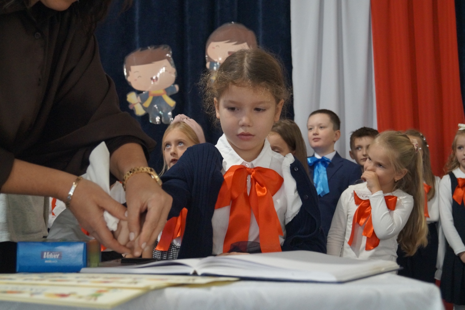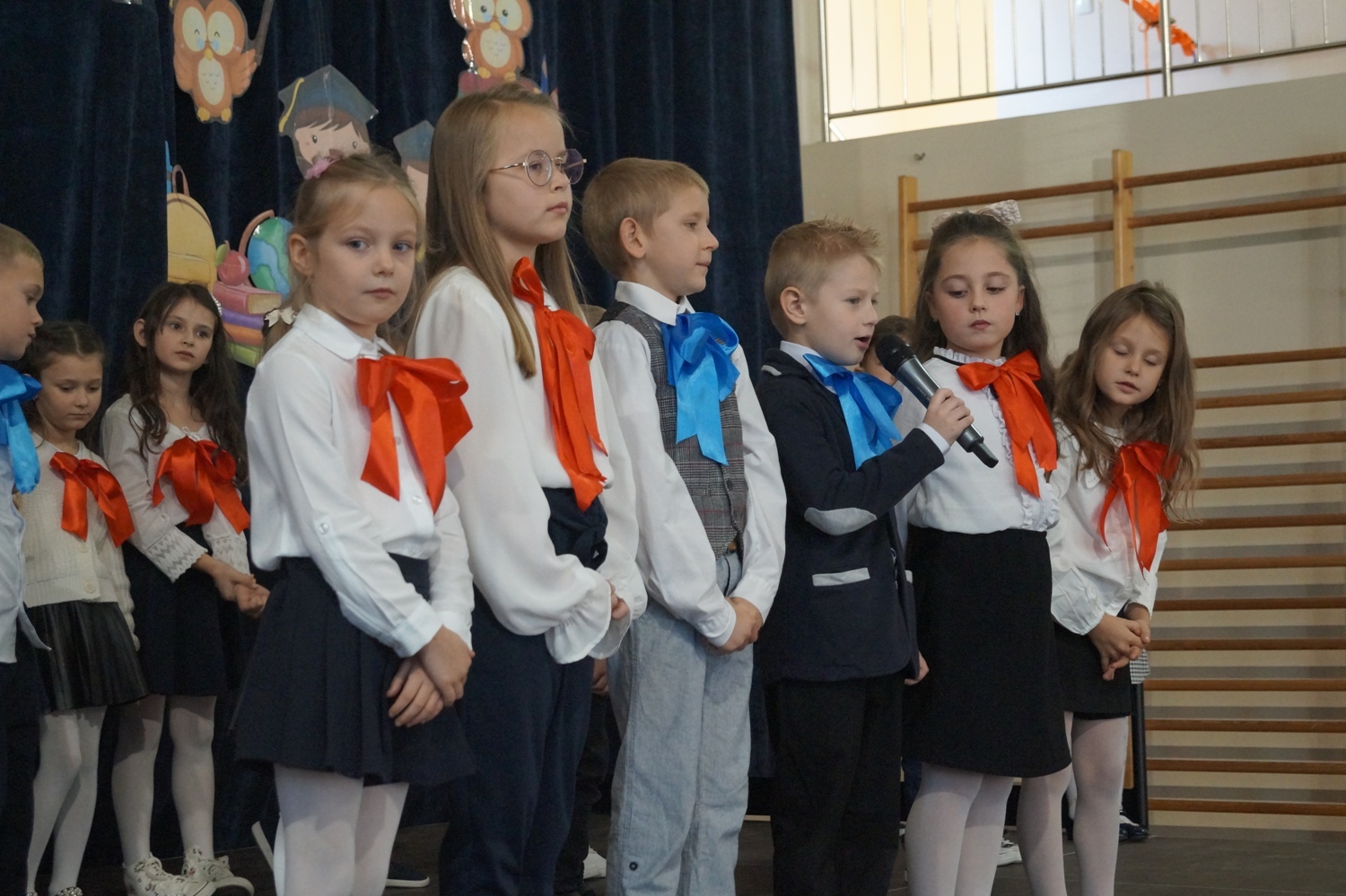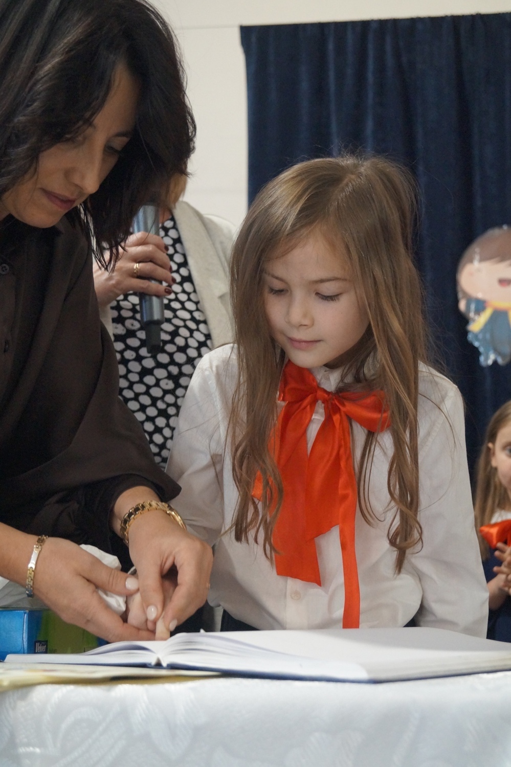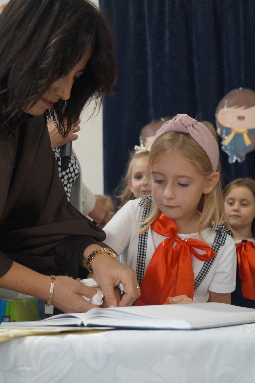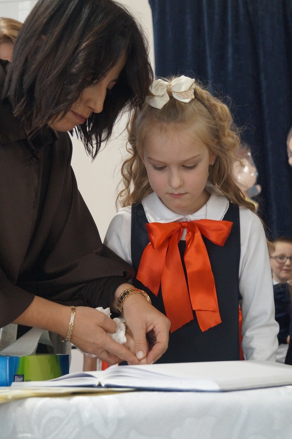 To wielkie wydarzenie rozpoczęła p. Dyrektor Urszula Ząber witając gości: Wójta Gminy Grybów p. Jacka Migacza, Grono Pedagogiczne, rodziców, społeczność szkolną oraz głównych bohaterów - Pierwszoklasistów. Obie klasy zaprezentowały swoje talenty recytatorskie, umiejętności wokalne i na sam koniec nie zabrakło żywiołowego tańca. Po tak obszernym i wymagającym zaprezentowaniu się z wielką radością dzieci zostały przyjęte do grona Uczniów Naszej Szkoły. Po uroczystym Ślubowaniu i Pasowaniu zaproszeni goście, rodzice i dzieci dokonali wspólnego sadzenia drzewa - symbolizującego Ich pobyt w szkole. Następnie udali się do sal i zasiedli z rodzicami do słodkiego poczęstunku.