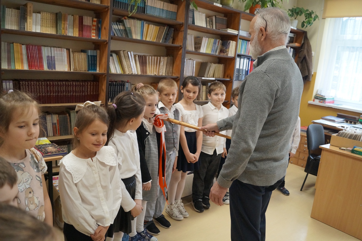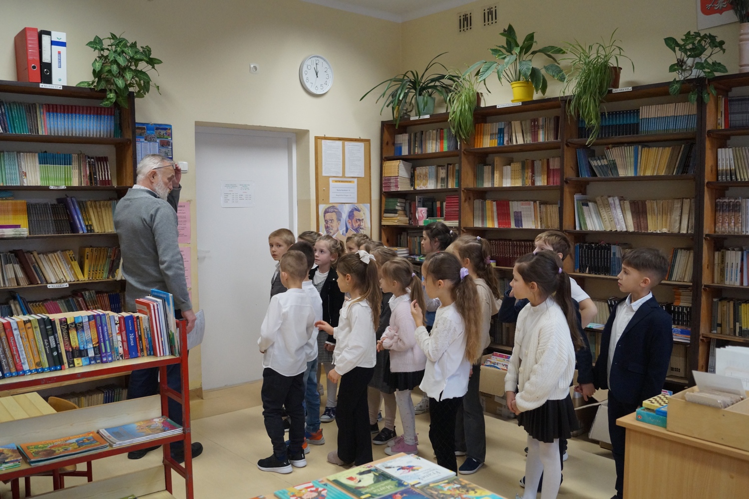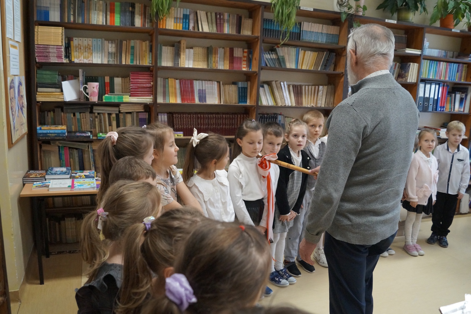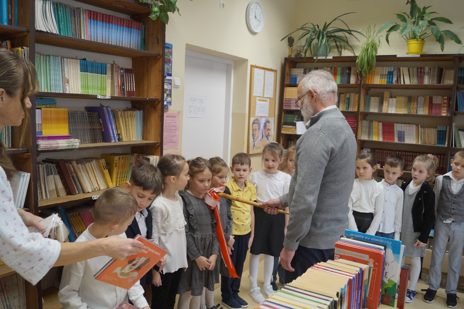 Uczniowie klasy Ib i Ia przybyli do biblioteki odświętnie ubrani wraz ze swoimi wychowawczyniami: p. Małgorzatą Siwiak i p. Beatą Rodak. Na korytarzu przywitał ich bibliotekarz szkolny, p. Wiesław Łaś.