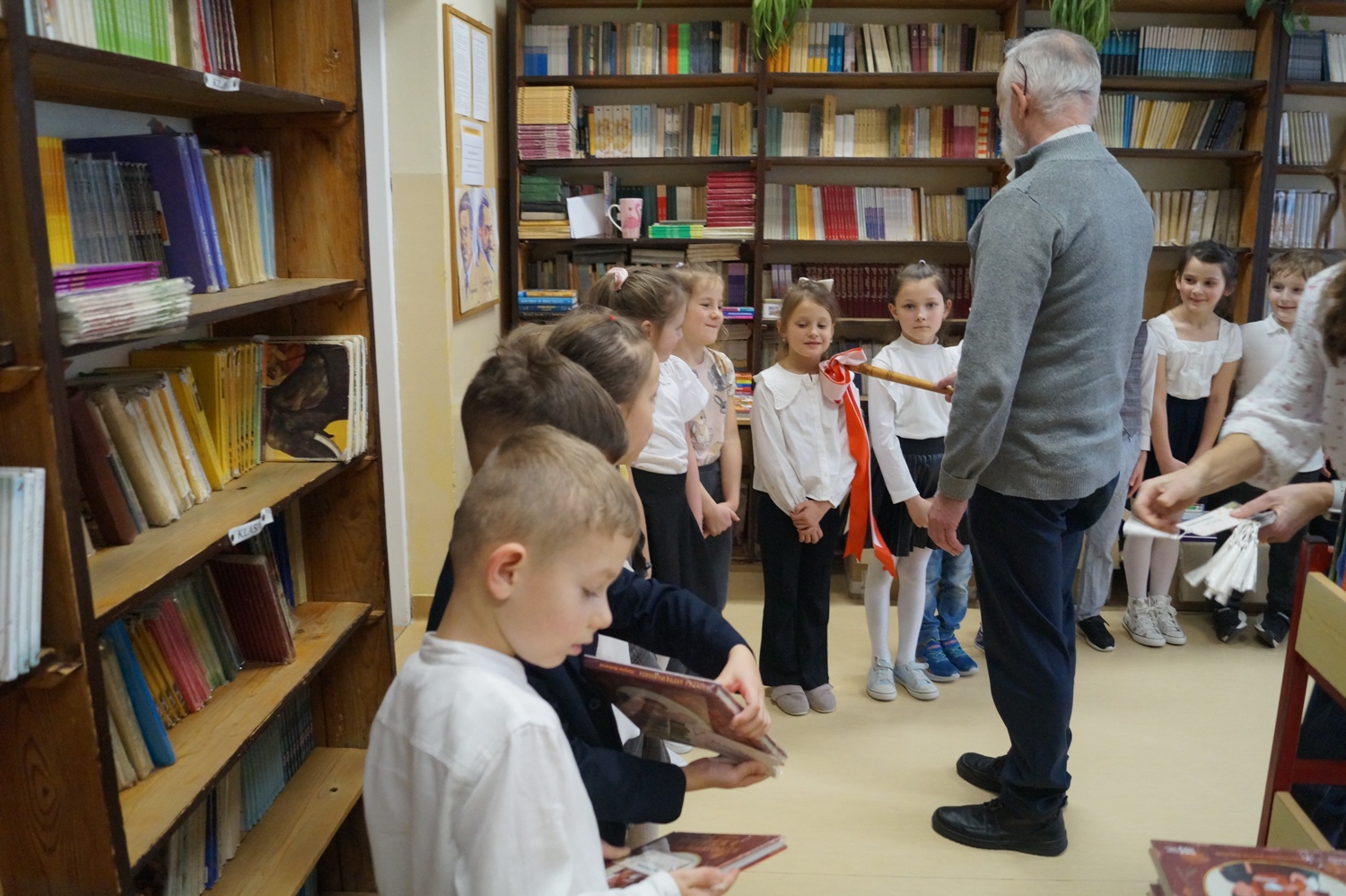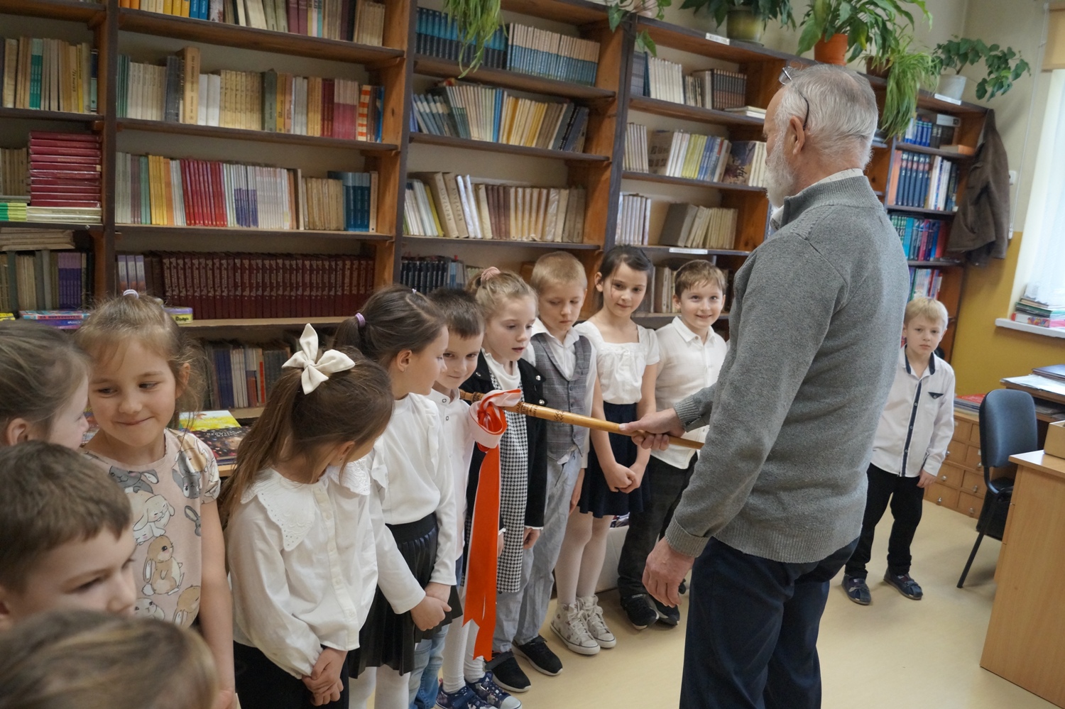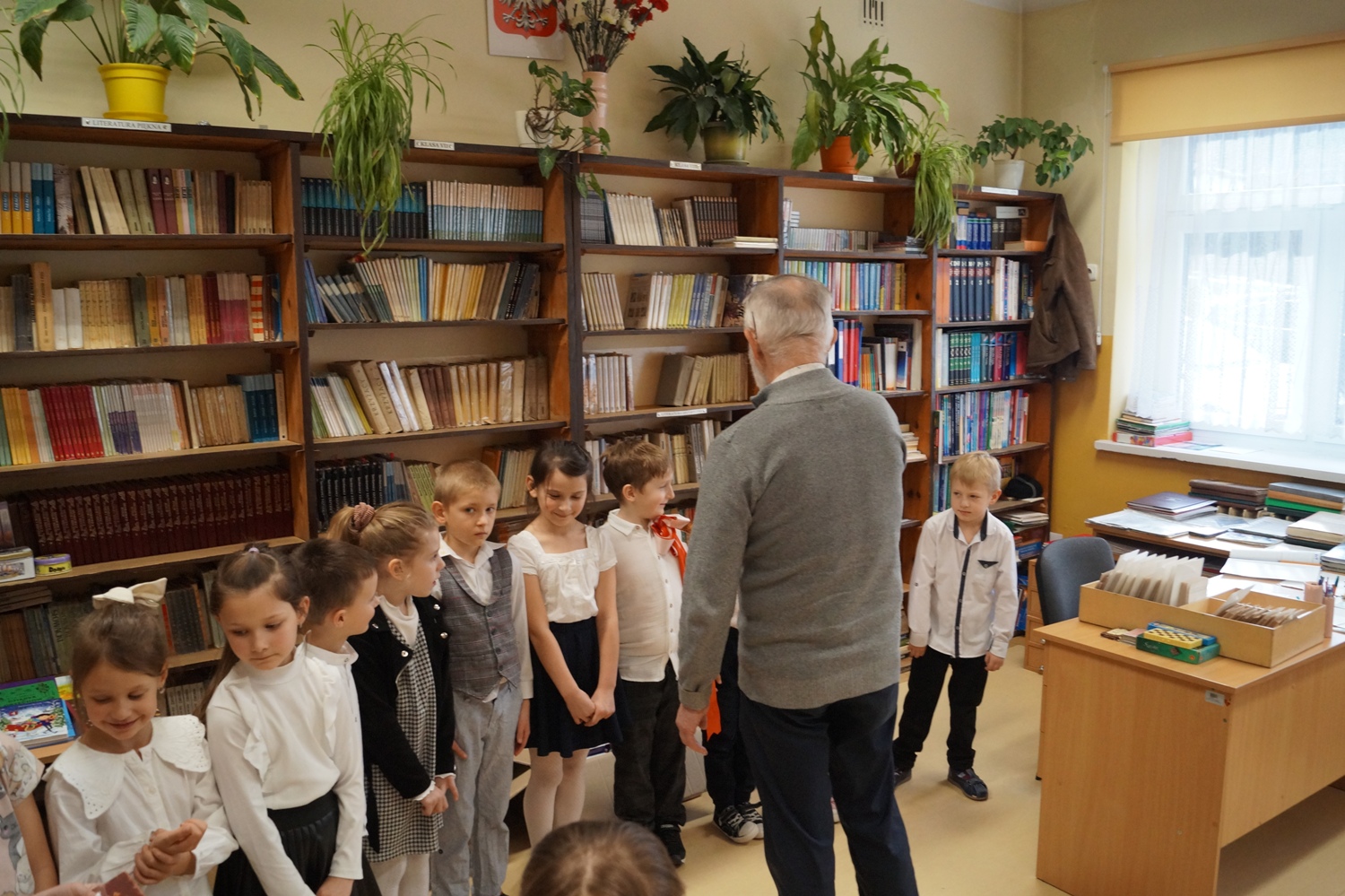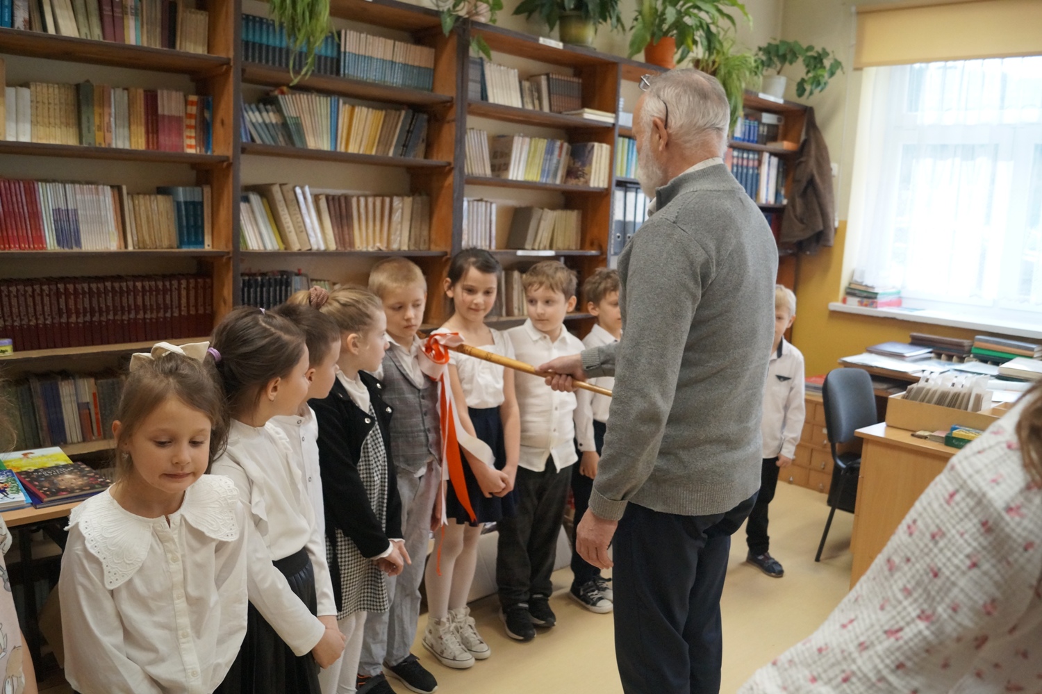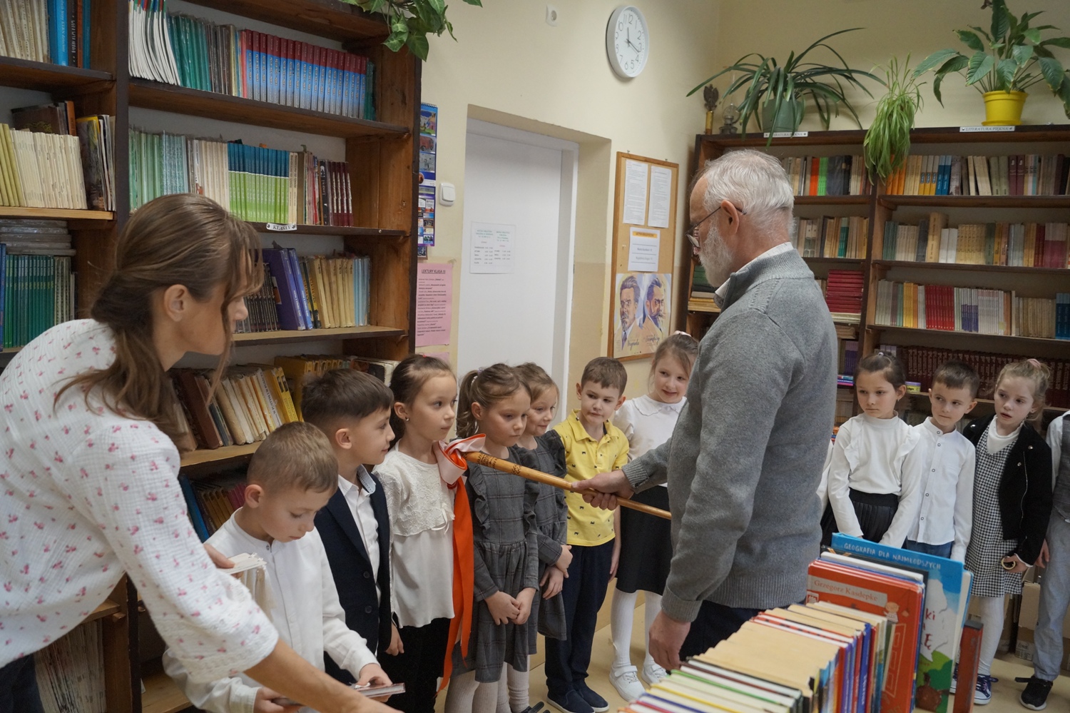 Uczniowie klasy Ib i Ia przybyli do biblioteki odświętnie ubrani wraz ze swoimi wychowawczyniami: p. Małgorzatą Siwiak i p. Beatą Rodak. Na korytarzu przywitał ich bibliotekarz szkolny, p. Wiesław Łaś.