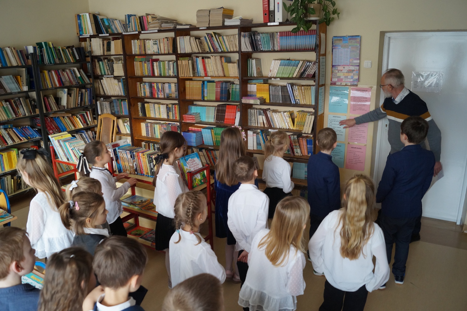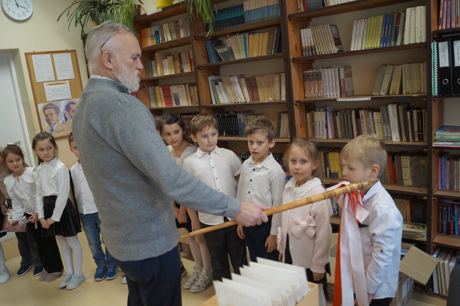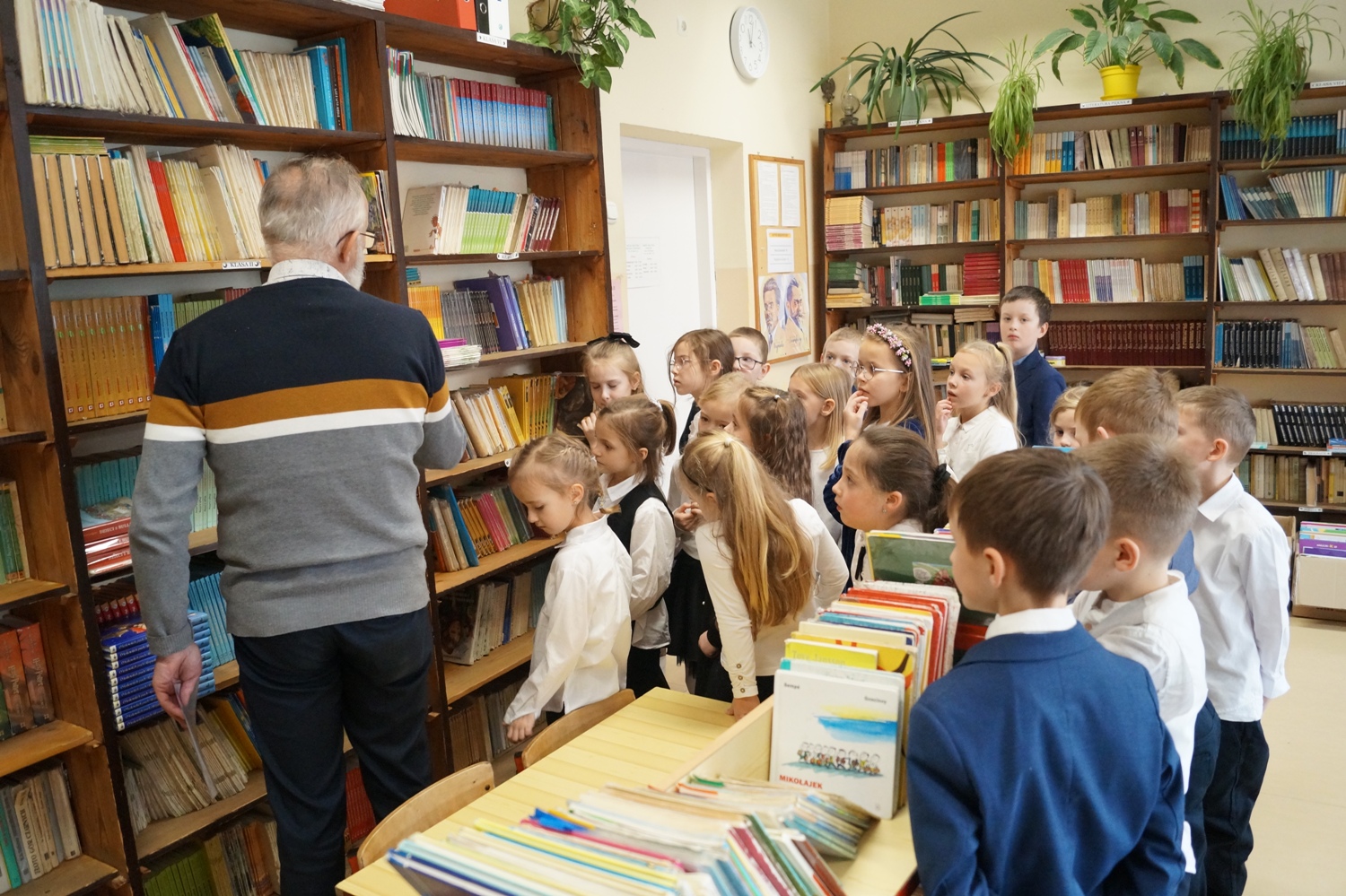 Przed opuszczeniem biblioteki p. Wiesław Łaś zachęcał pierwszoklasistów do częstego odwiedzania tego miejsca oraz wypożyczania i czytania książek.