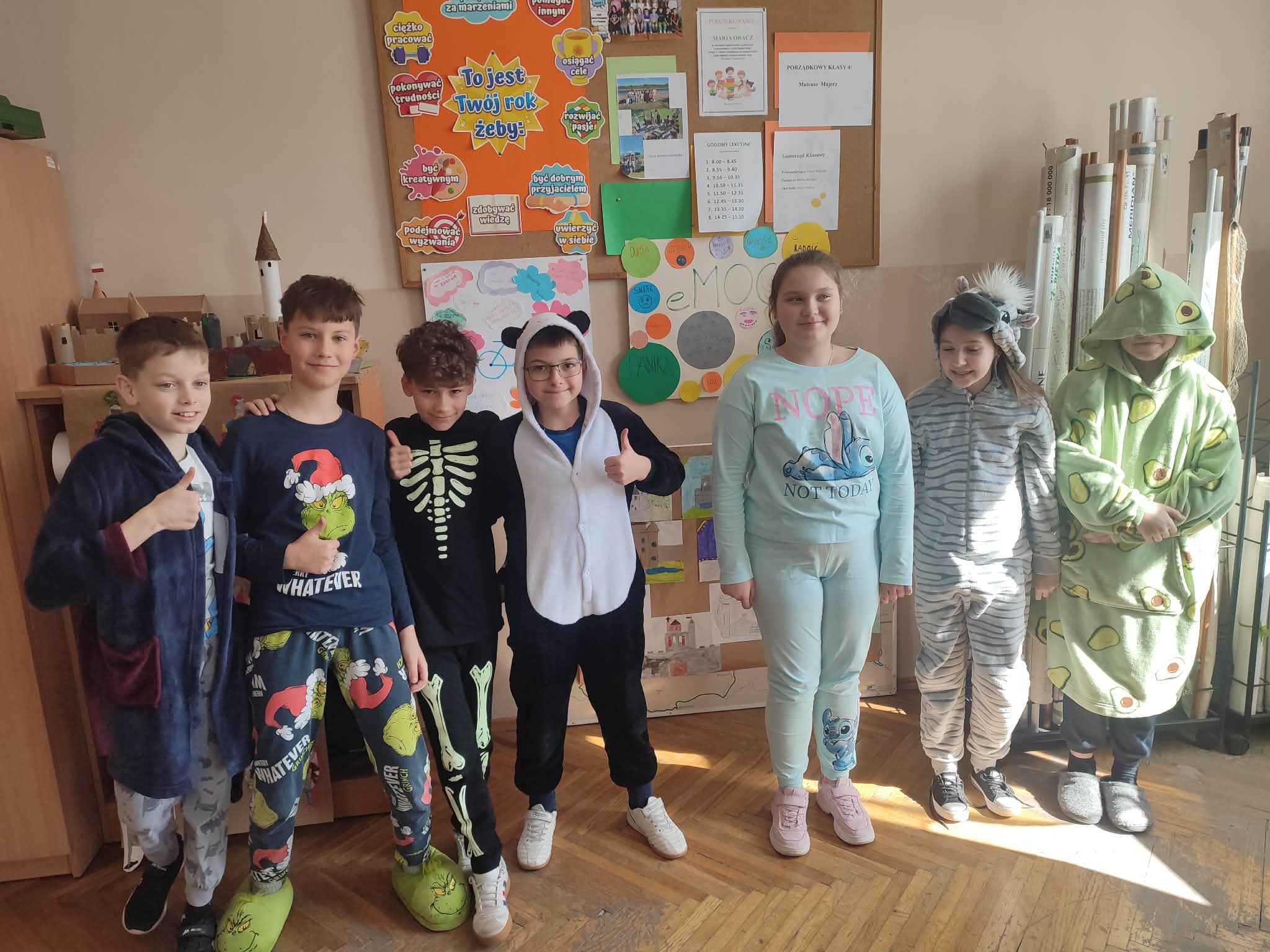 Tydzień rozpoczęliśmy bardzo komfortowo! Uczniowie przyszli do szkoły w piżamach, szlafrokach i kapciach. Na korytarzach panowała wyjątkowo przytulna atmosfera, a nauka w takim wydaniu okazała się nie tylko możliwa, ale i bardzo przyjemna.