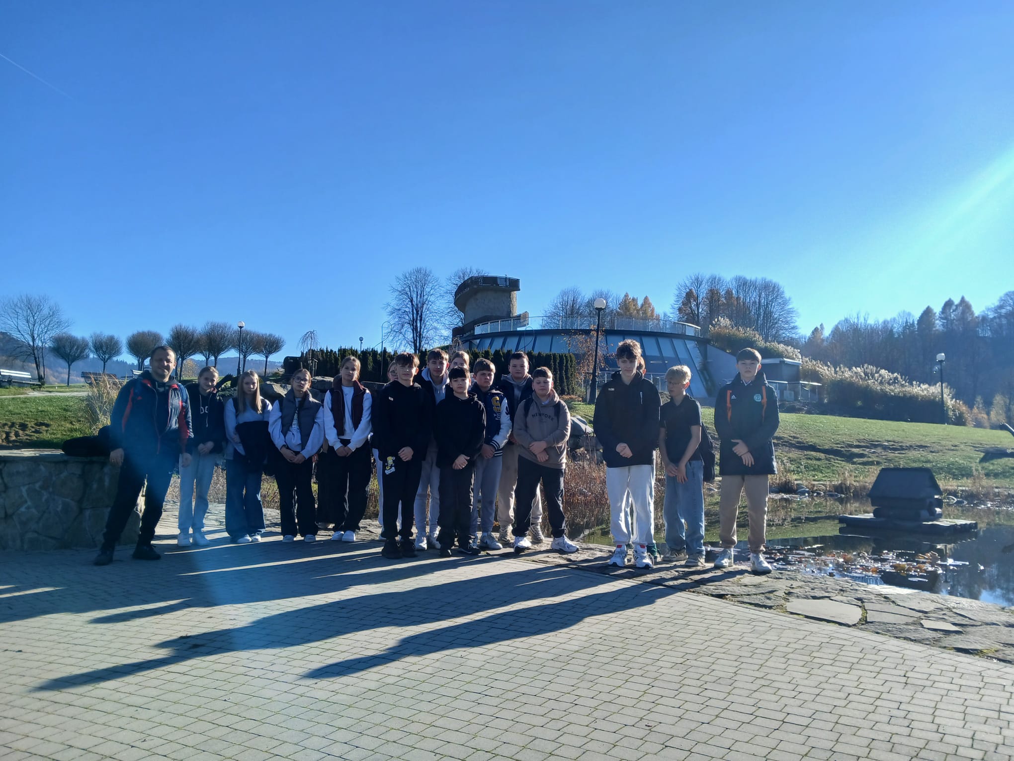 Czekając na wymarzoną „Złotą Polską Jesień” uczniowie klasy VII udali się do Muszyny. W niezwykle malowniczej miejscowości zdobyli niedawno otwartą wieżę widokową na wzgórzu Malnik, następnie spacerowali po Ogrodach Sensorycznych tego uzdrowiska, a na koniec podziwiali ciekawe zwierzęta w mini ZOO. Całą wycieczkę uwieńczył wspólny posiłek w restauracji KFC. Kolejny raz udało się udowodnić, że nie trzeba daleko wyjeżdżać, aby zobaczyć tak wiele ciekawych atrakcji i przeżyć niezapomniane chwile.