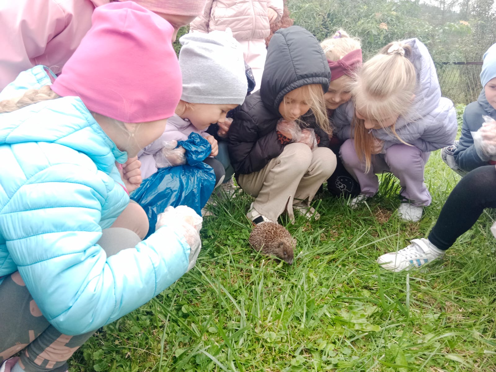 Największą niespodzianką podczas sprzątania było jednak spotkanie… jeża! Zwierzątko wzbudziło w dzieciach ogromną radość i przypomniało, że czysta przyroda to nie tylko piękne otoczenie, ale także bezpieczny dom dla wielu zwierząt.