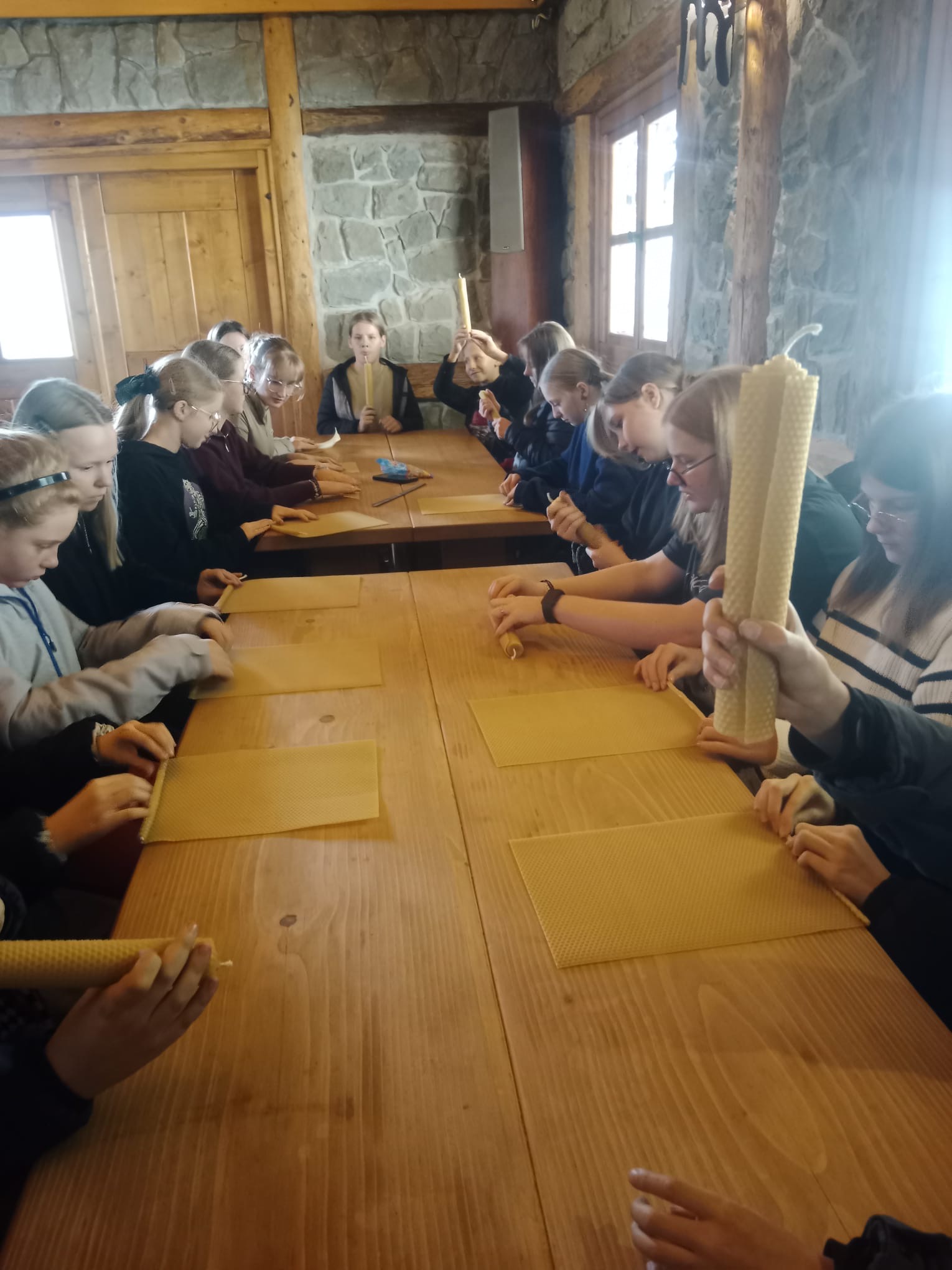 Polska Spółka Gazownictwa w ramach kontynuacji akcji „Eko Dzień” zorganizowała uczniom naszej szkoły niecodzienny prezent. Przedstawiciele klas IV-VIII zostali zaproszeni na warsztaty przyrodnicze do Nadleśnictwa Limanowa. Niespodzianka jaką przygotowali organizatorzy dała młodym przyrodnikom wiele radości, ale przede wszystkim praktycznej wiedzy dotyczącej lasu i życia pszczół. Uczniowie naszej szkoły odbyli ciekawy spacer w towarzystwie leśniczego po zalesionych terenach dawnego kamieniołomu w Siekierczynie, gdzie mogli posłuchać opowieści doświadczonego przyrodnika. Kolejną niespodzianką było spotkanie z lokalnym Bartnikiem i obserwacja życia pszczół w specjalnie przygotowanym na tę okoliczność szklanym ulu. Dzieci mogły zgłębiać tajniki wiedzy pszczelarskiej słuchając i zadając pytania, a także obserwując z bliska zachowanie najbardziej pracowitych istot na ziemi. Spędzając beztroski czas w leśnej chatce młodzi przyrodnicy próbowali swoich sił wytwarzając piękne woskowe świece, a na koniec degustując przysmaki bartniczej pracy. Kilkugodzinne warsztaty uwieńczyły wspólne zdjęcia i słodkie upominki.