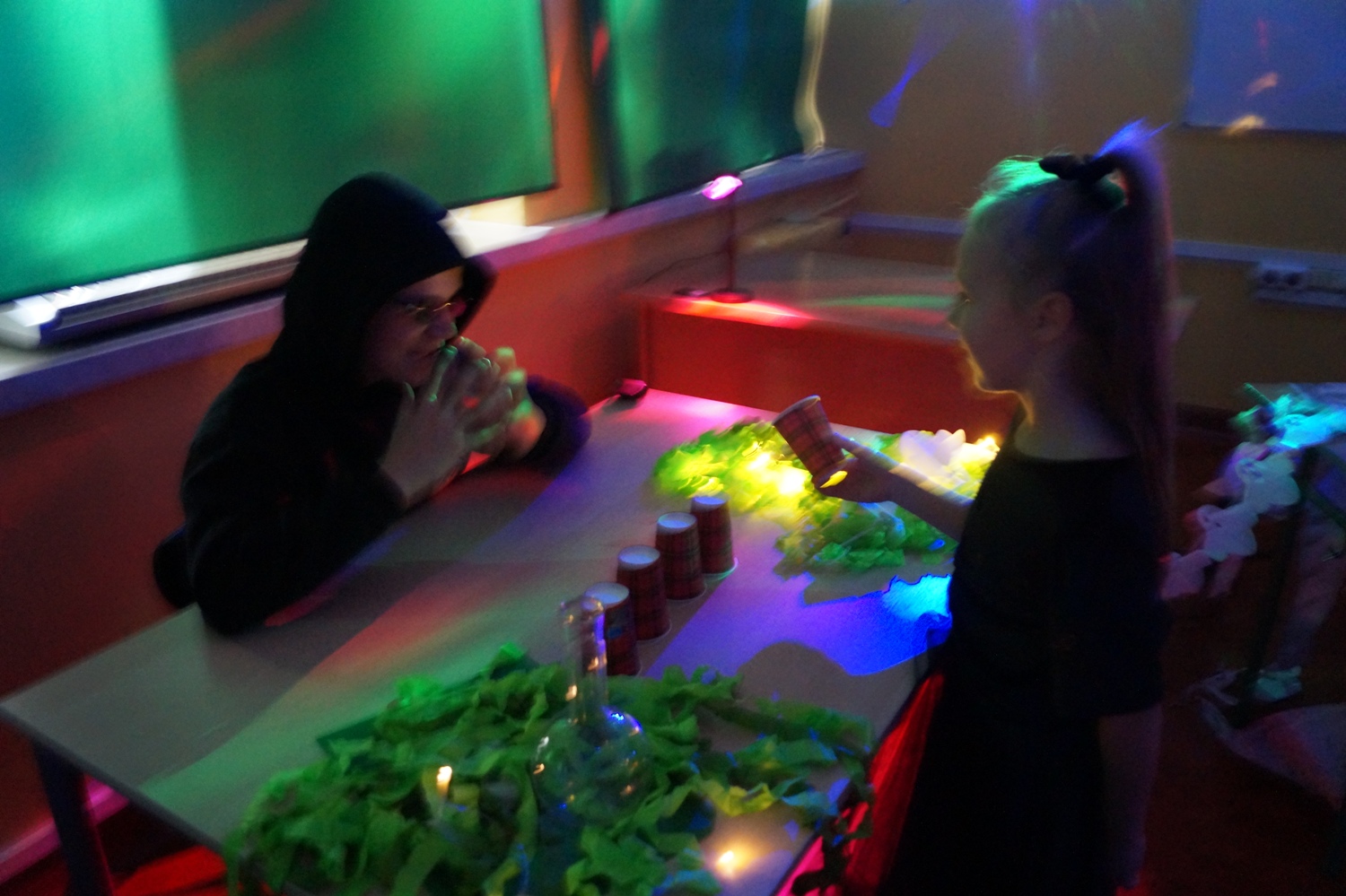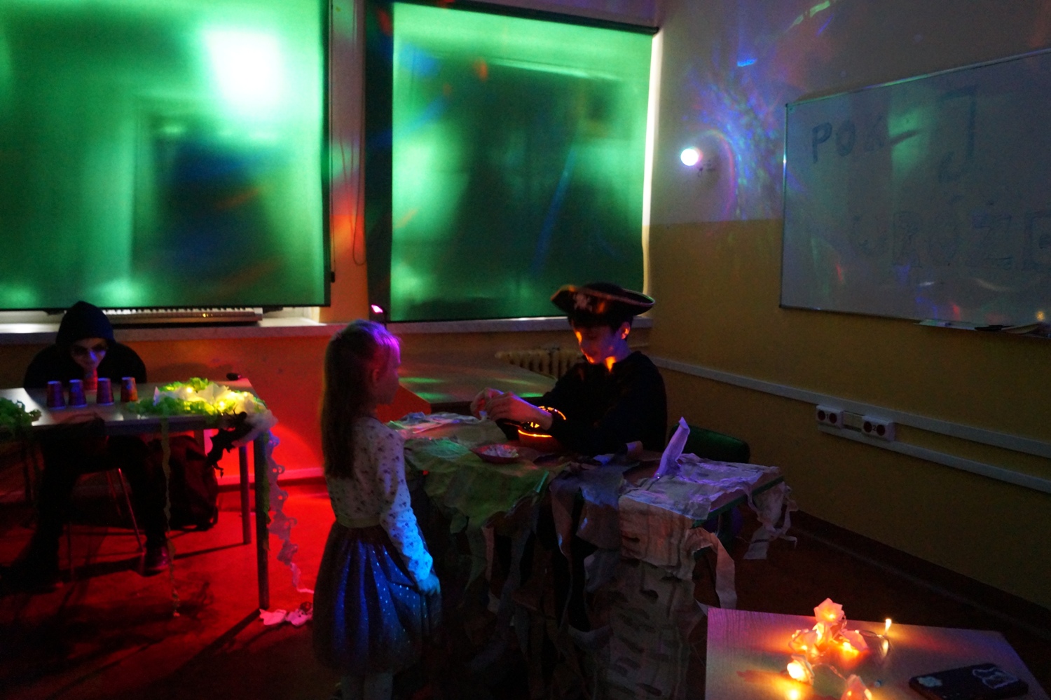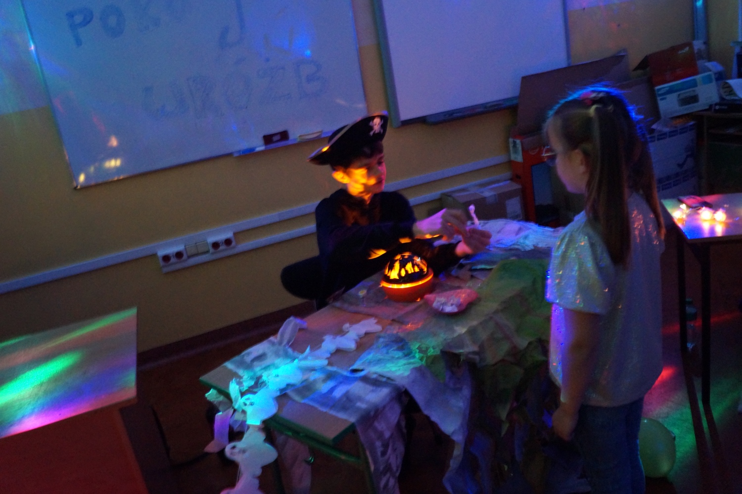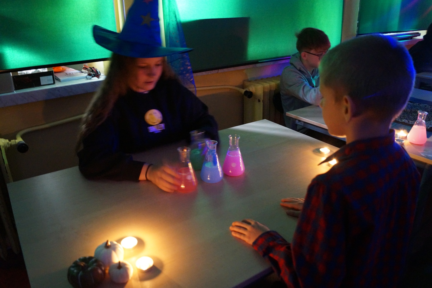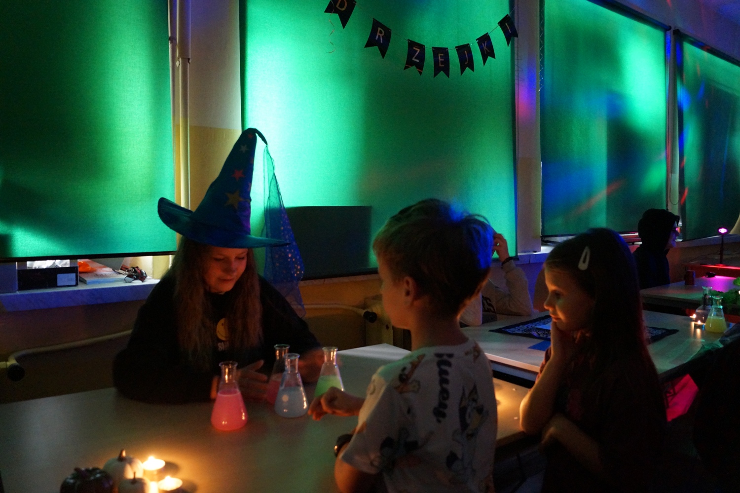 Już od rana na korytarzach można było poczuć atmosferę tajemnicy. Uczniowie klas młodszych rozpoczęli świętowanie od wróżb przygotowanych przez starszych kolegów z klasy 8. Śmiechu było co niemiara, a dzieci chętnie dzieliły się swoimi „przepowiedniami”.