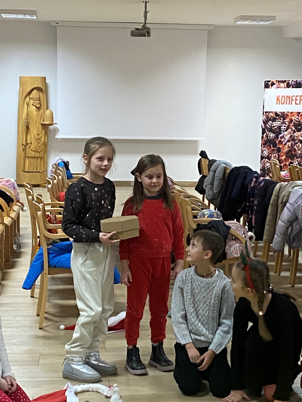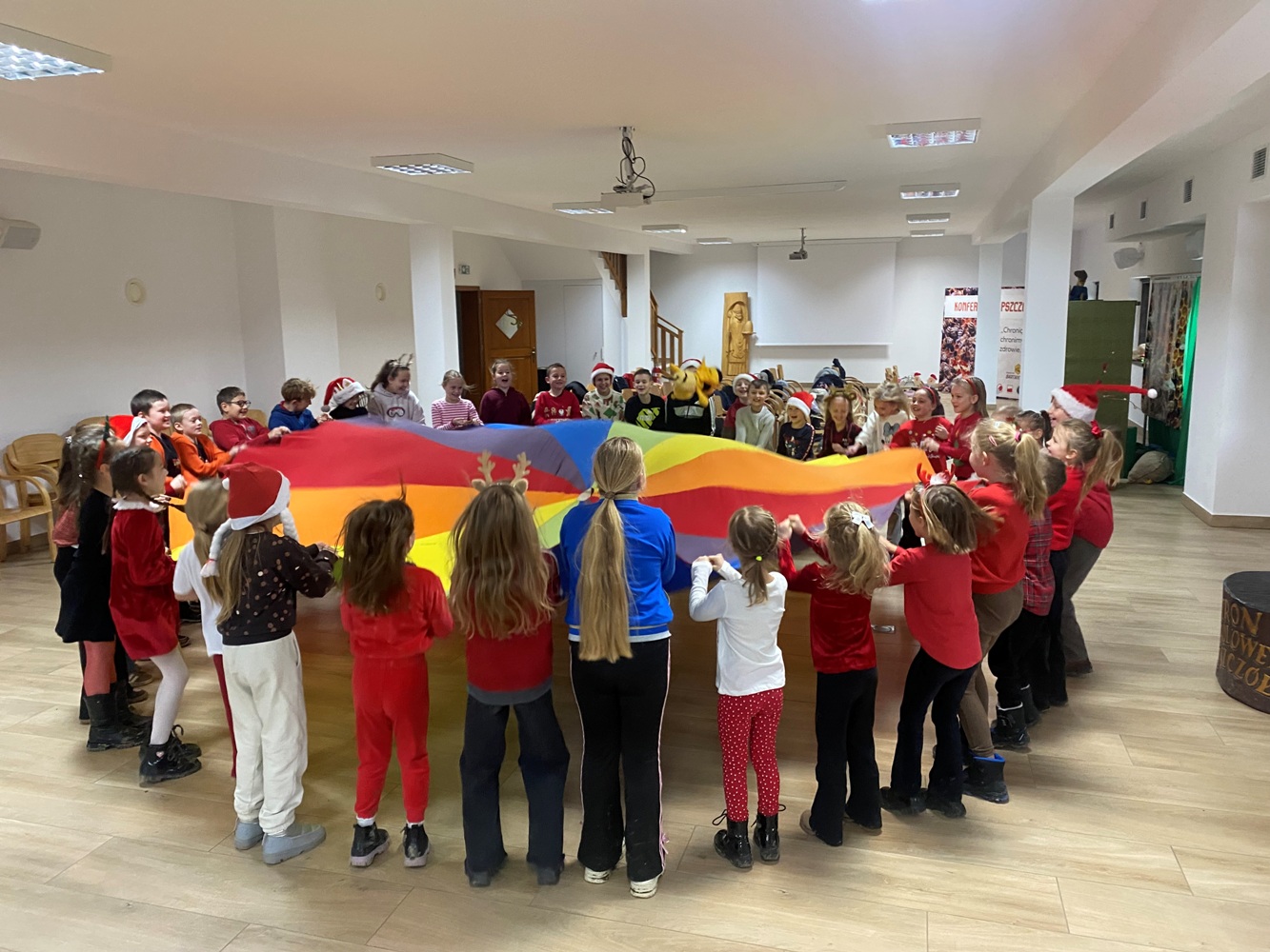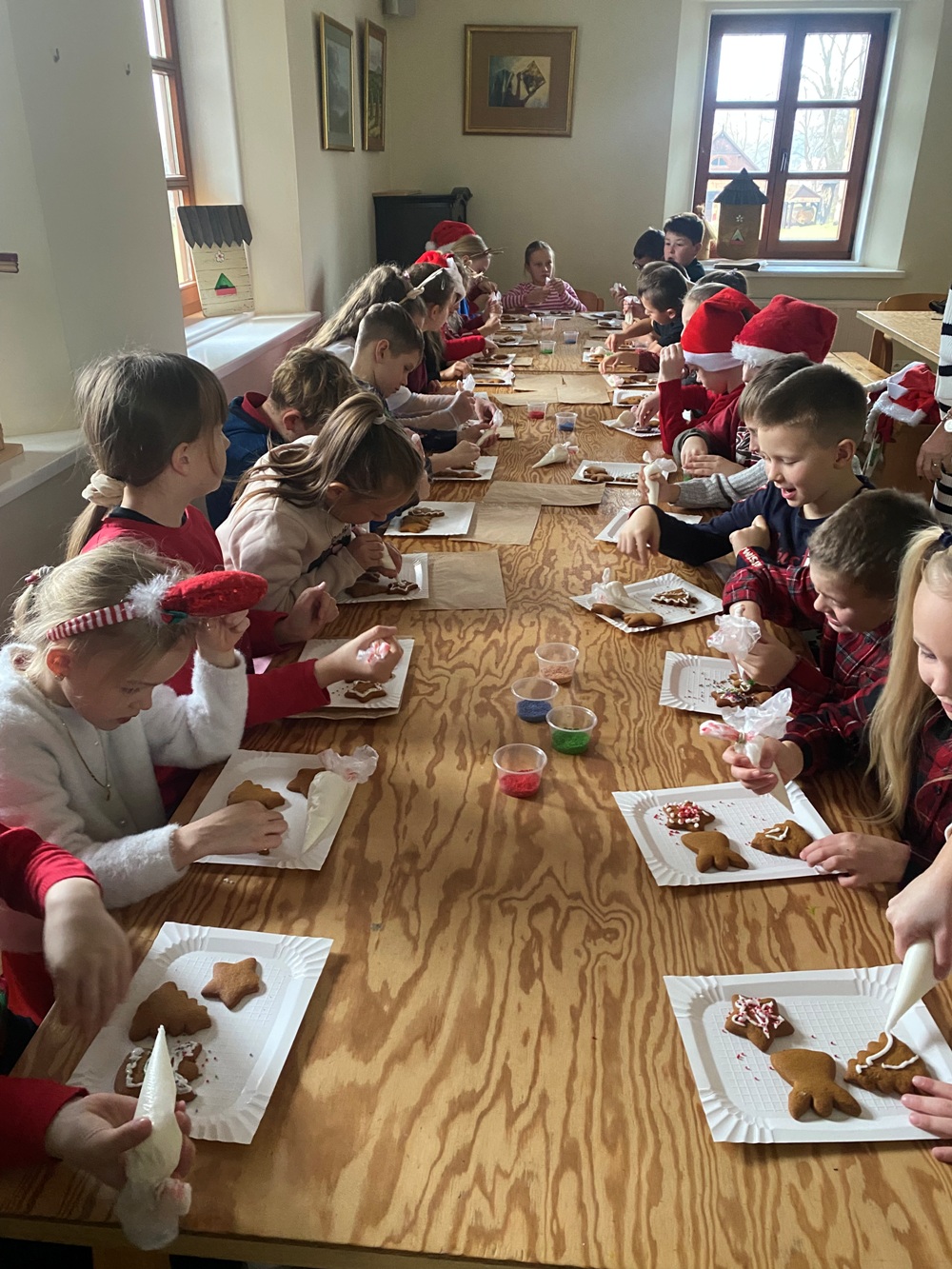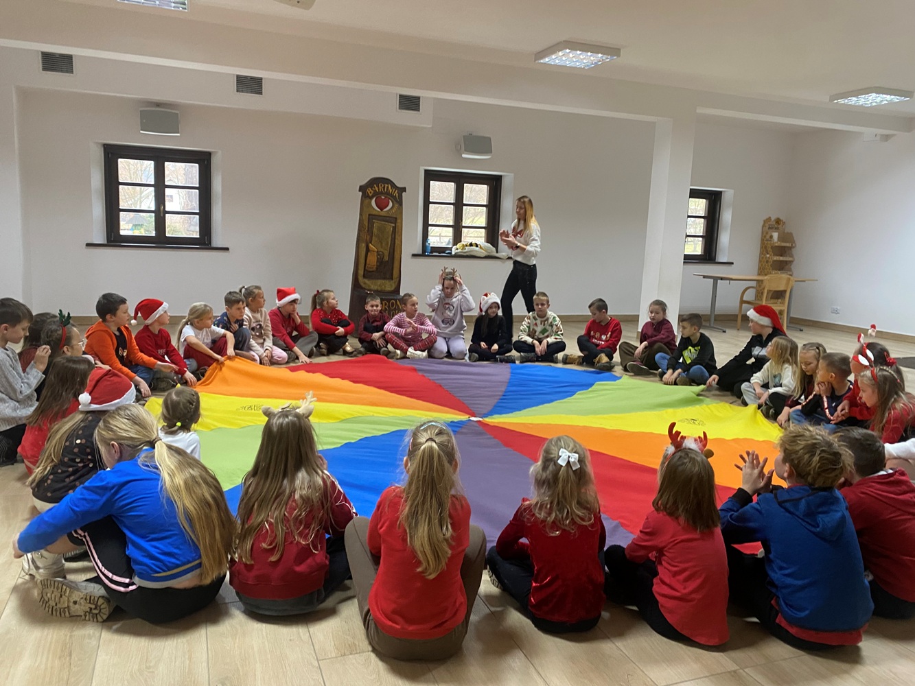 5 grudnia 2025 r. uczniowie klasy 1A oraz 3, zaproszeni przez samego Św. Mikołaja, wybrali się do „Sądeckiego Bartnika” w Stróżach. Pobyt rozpoczęli od wysłuchania pięknej historii o Św. Mikołaju i warsztatów piernikowych. Następnie pani przewodnik zaprosiła wszystkich do zwiedzania „Gospodarskiej Zagrody”, w której dzieci miały okazję z bliska przyjrzeć się kozom, koniom i osiołkom oraz pooglądać różnego gatunku ptactwo domowe. Miały również możliwość karmić kozy oraz skosztować sera koziego. W dalszej części pobytu uczniowie obejrzeli teatrzyk pt. „Pszczółka i Przyjaciele” – barwny, wesoły i bardzo pouczający oraz wzięli udział w mikołajkowych zabawach i grach animacyjnych…, aż nadszedł wyczekiwany przez dzieci moment – spotkanie ze Św. Mikołajem. Każdy z uczestników wycieczki otrzymując prezent od Św. Mikołaja miał okazję z nim porozmawiać oraz zrobić pamiątkowe zdjęcie.