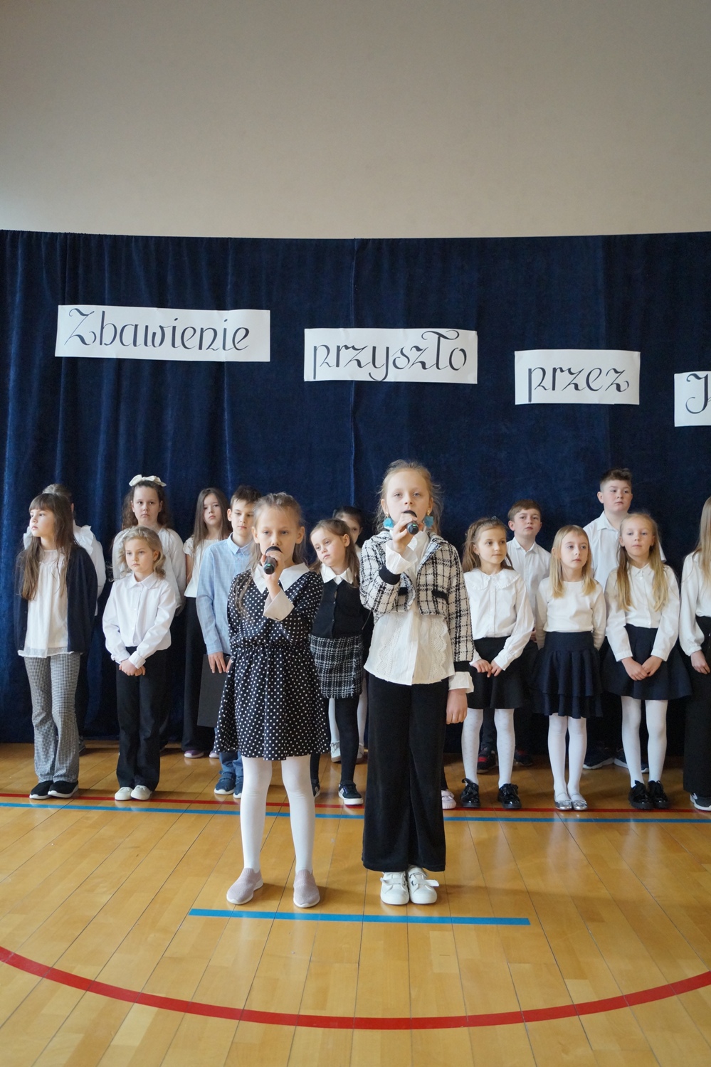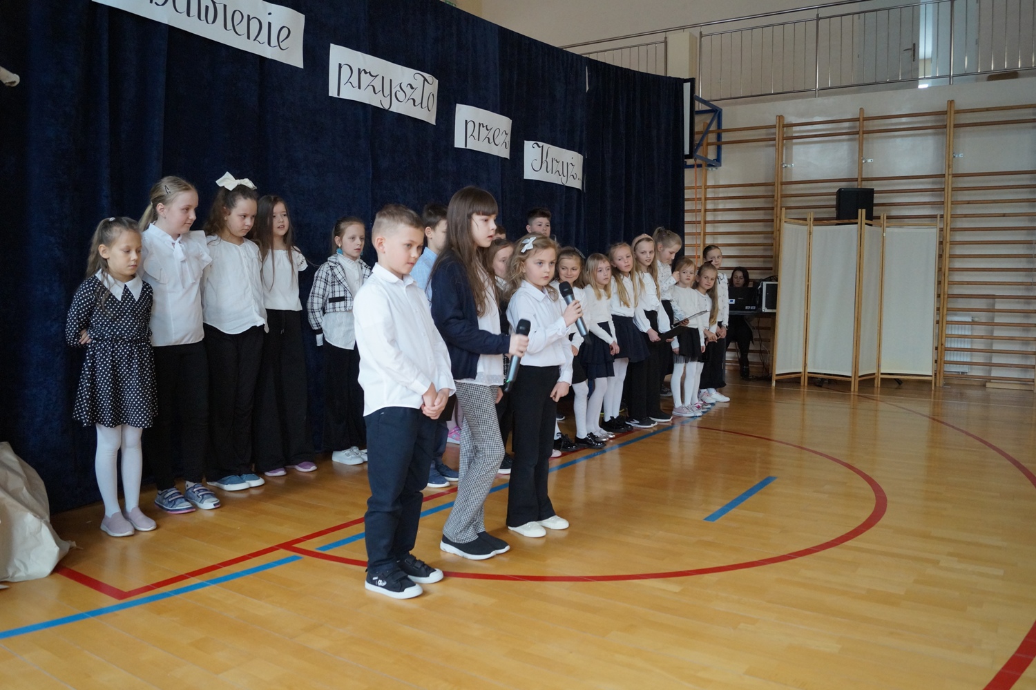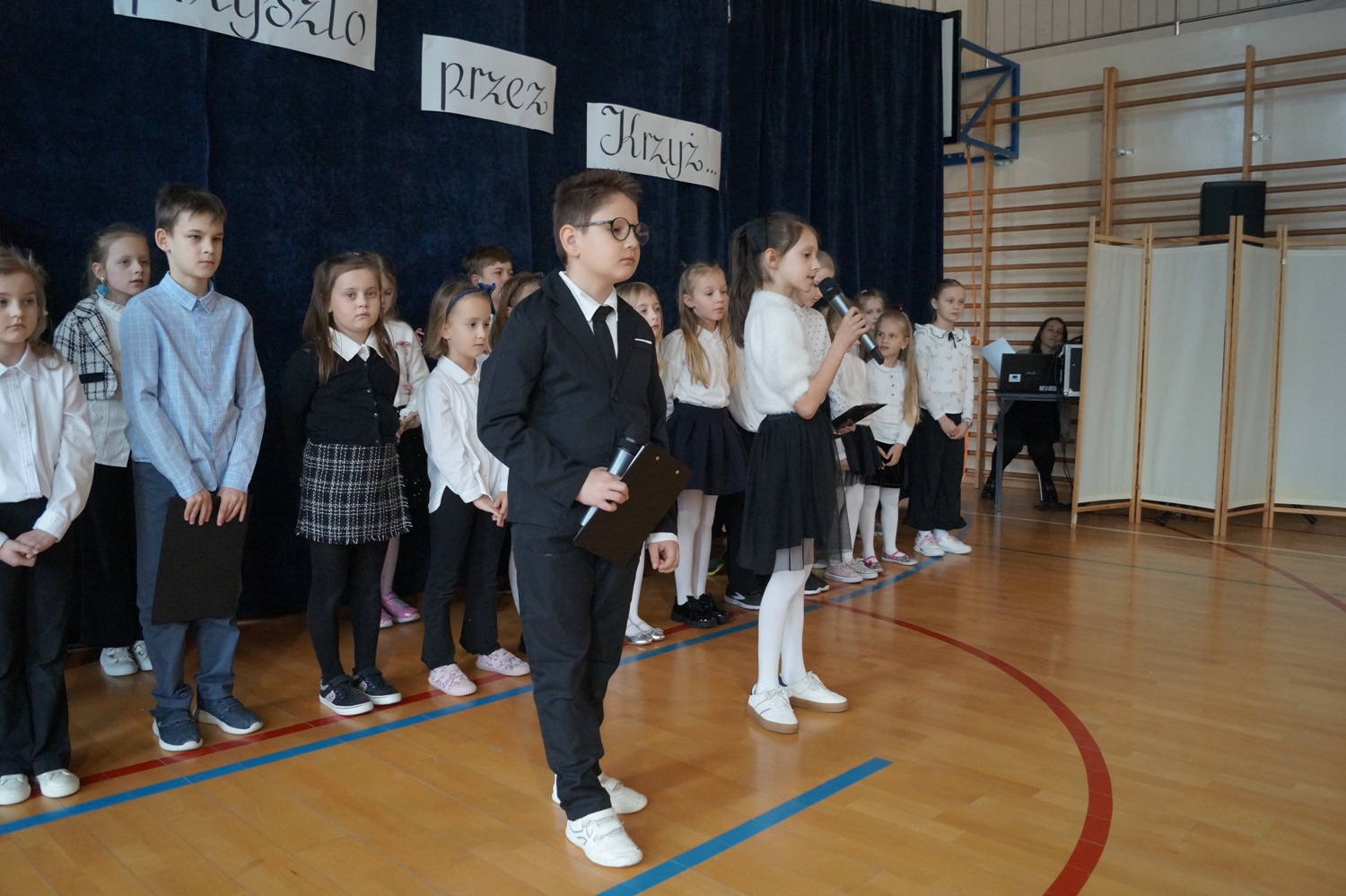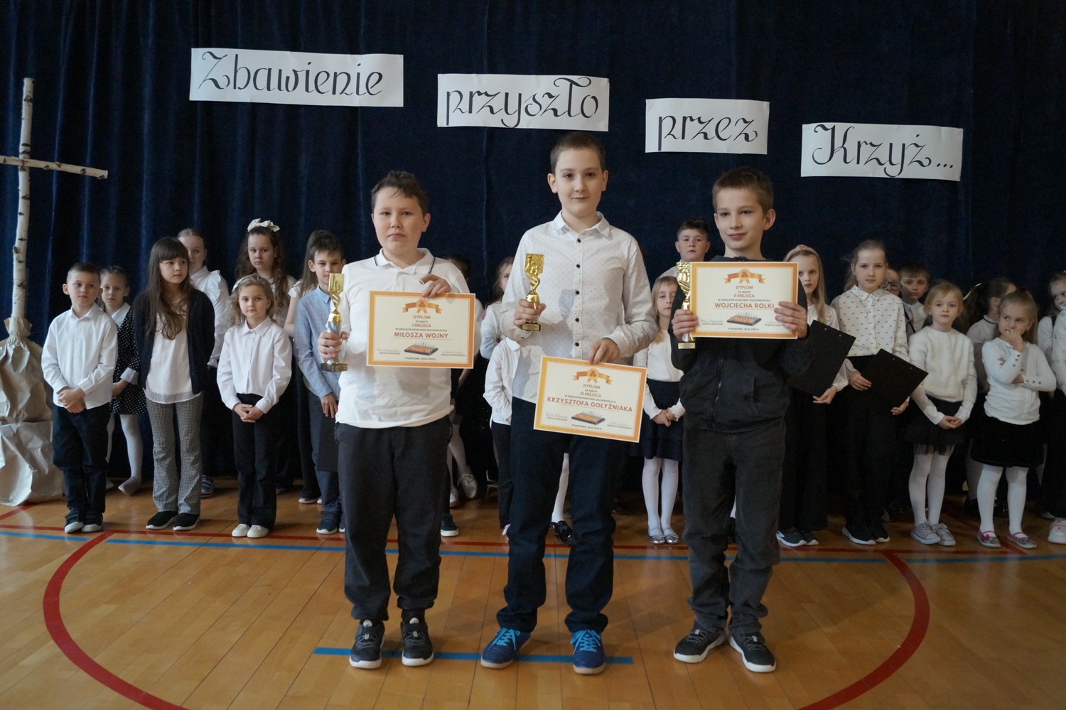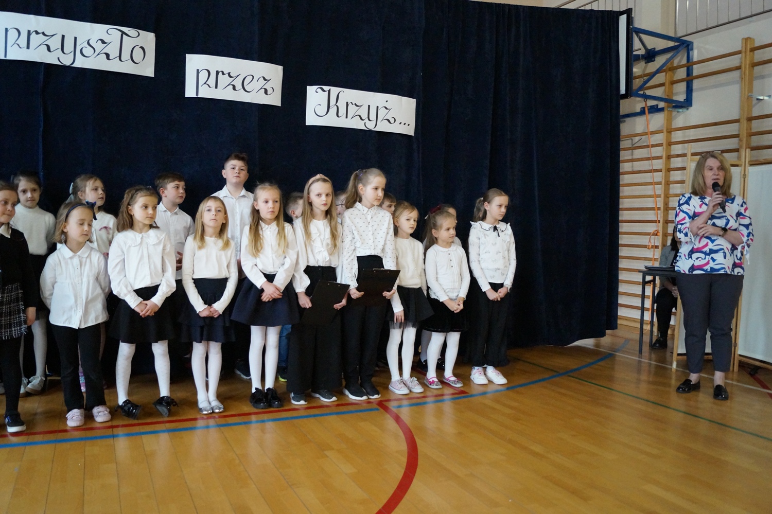 "Zbawienie przyszło przez krzyż" - pod takim tytułem uczniowie klasy Ia i klasy III w dniu 1 kwietnia 2026 roku podczas uroczystej akademii wprowadzili nas w klimat świąt paschalnych. Zebrani na uroczystym apelu mogli pogłębić ducha swojej wiary i w zadumie nad własnym życiem, przygotować się do przeżywania świąt Zmartwychwstania Pańskiego. Scenariusz wielkanocnego montażu słowno-muzycznego wzbogaciły piękne pieśni wielkopostne zaśpiewane przez naszych wspaniałych artystów.
