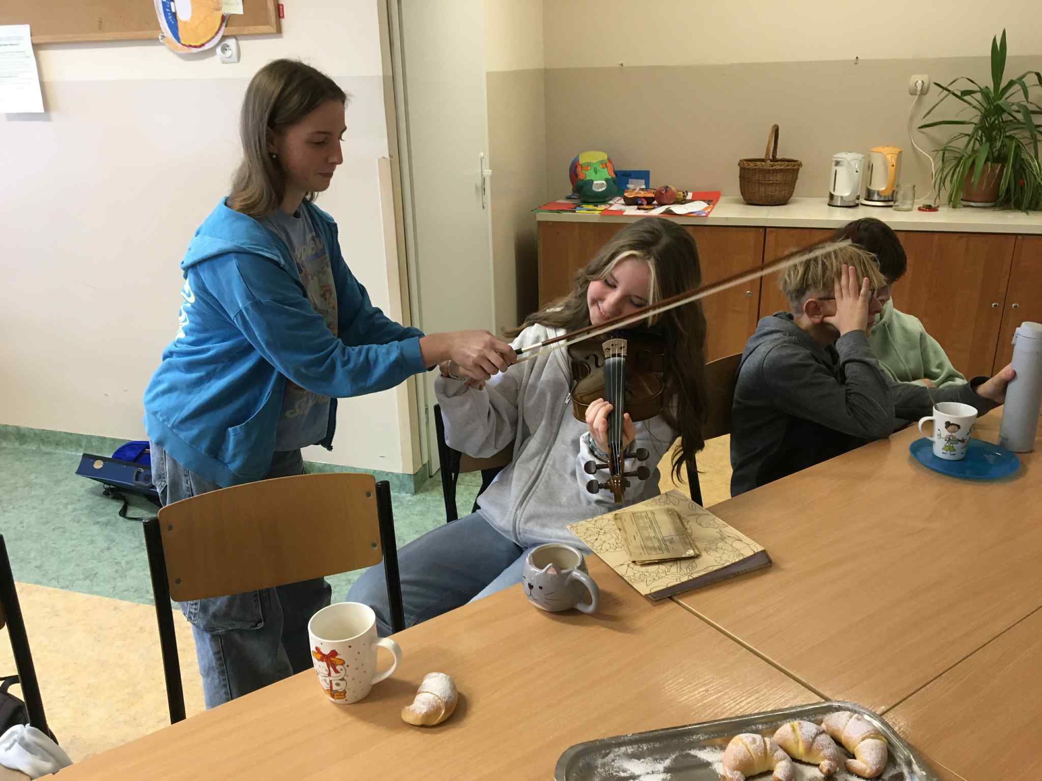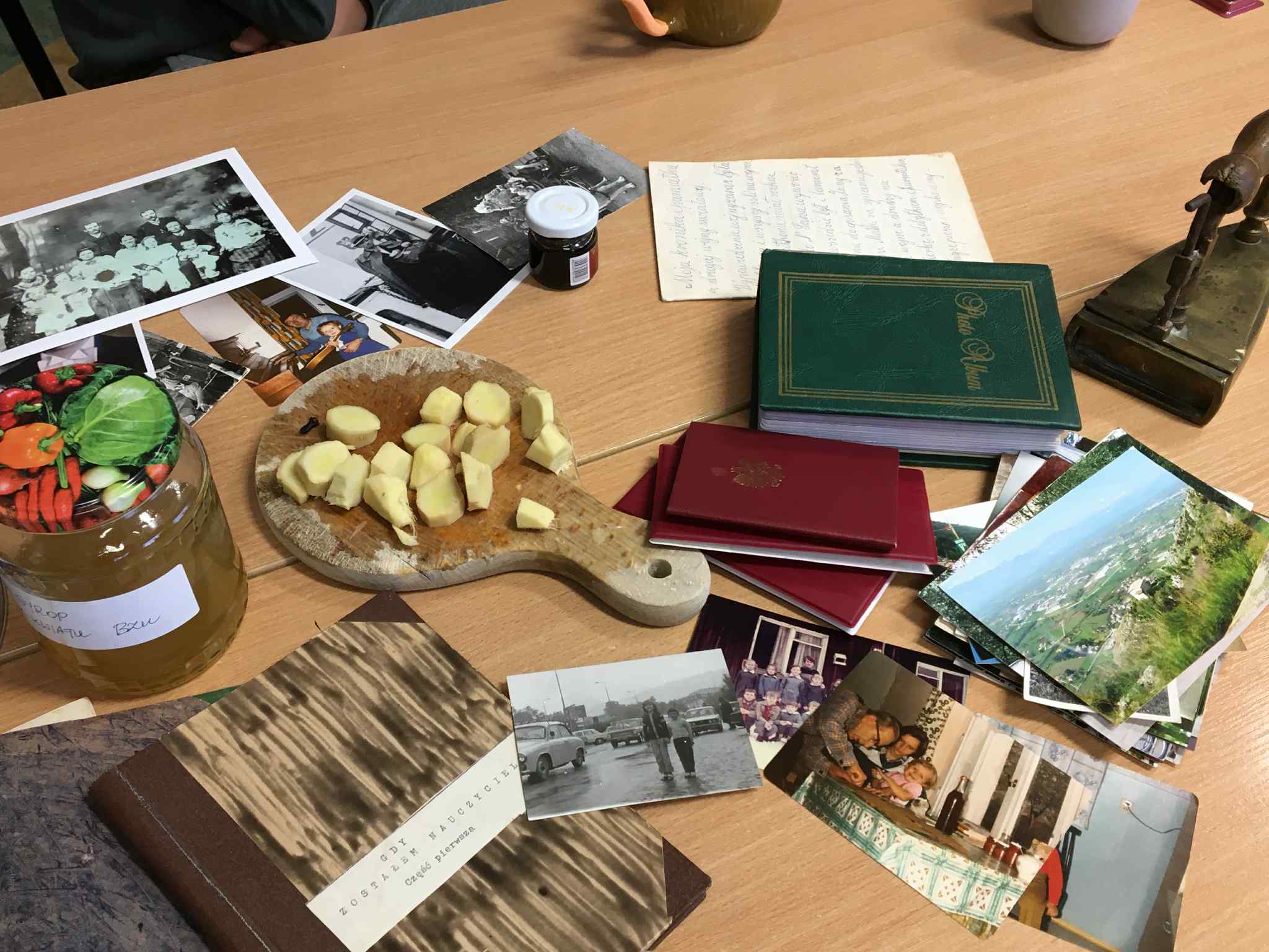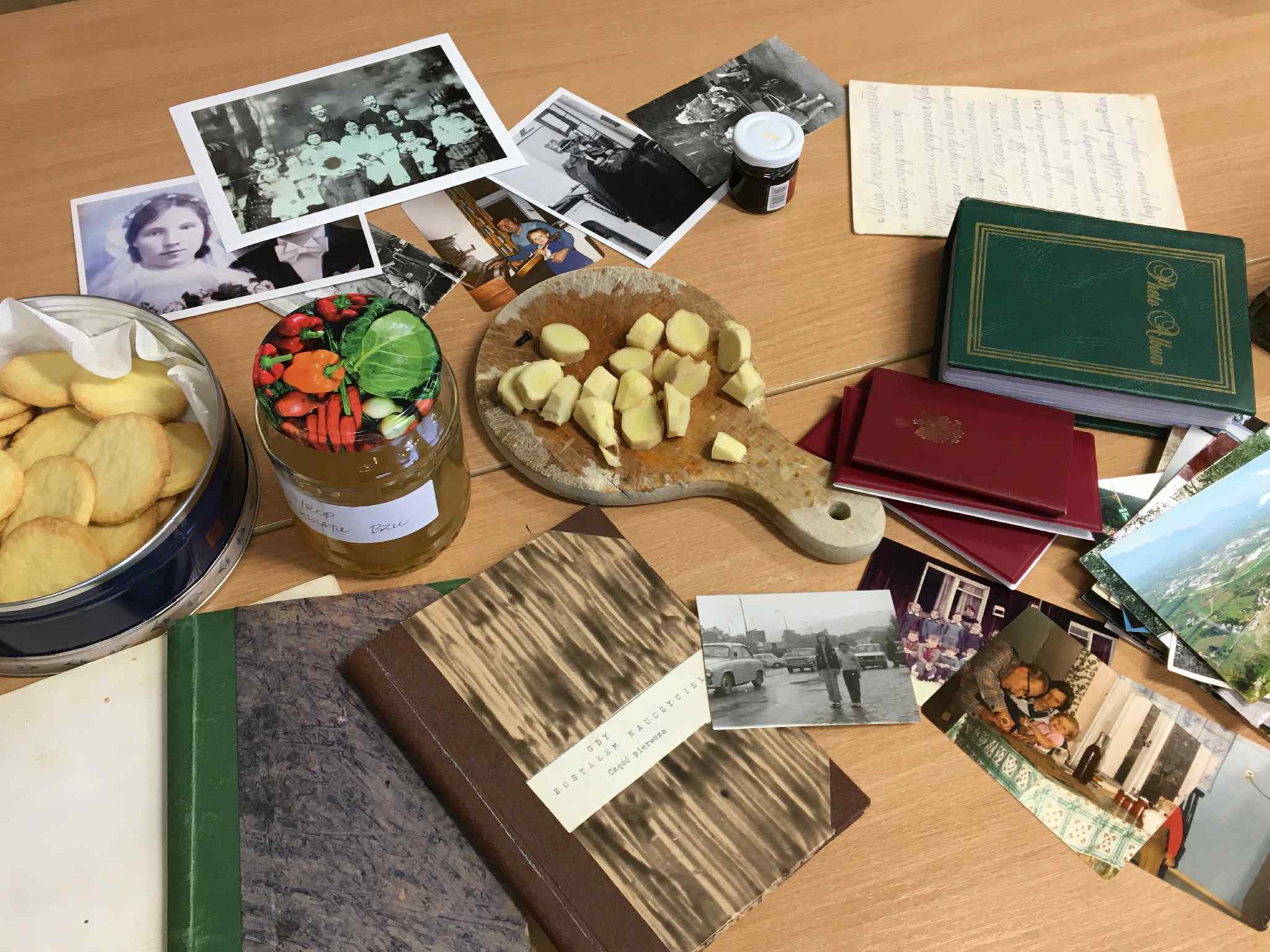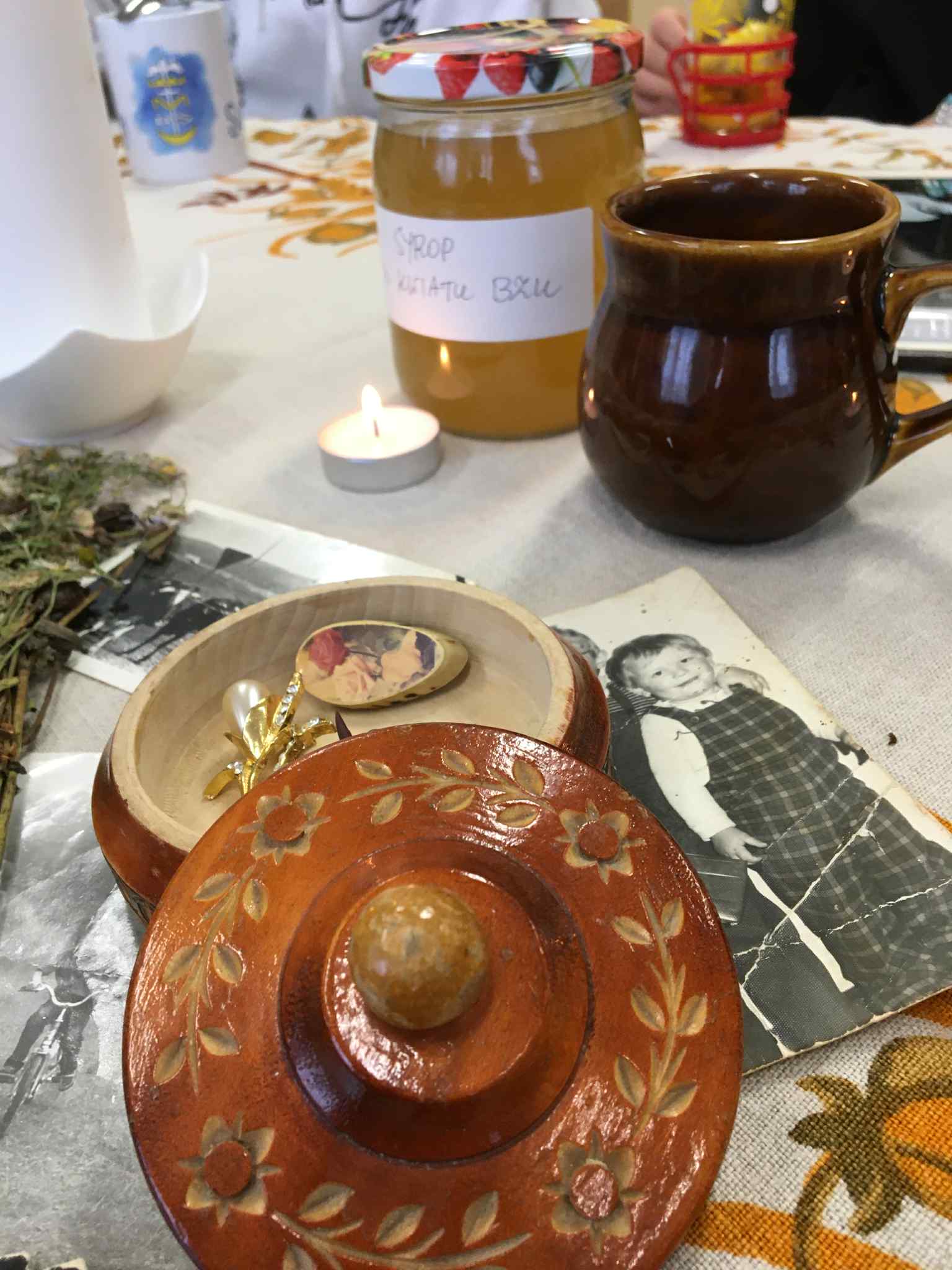 Uczniowie klasy VII i VIII rozpoczęli przygotowania do tych lekcji już pod koniec ubiegłego roku szkolnego. Wtedy to w pobliżu szkoły zrywali do wiklinowych koszyków kwiaty czarnego bzu, aby zrobić z niego leczniczy syrop wspierający odporność w sposób naturalny, według receptury naszych babć. Wraz z nastaniem jesiennej deszczowej aury młodzież postanowiła uatrakcyjnić zajęcia pyszną herbatką z dodatkiem syropu z kwiatu bzu, cytryną, imbirem i goździkami. Uczennice o zdolnościach kulinarnych zaserwowały ciasteczka, cynamonki i rogaliki według tradycyjnych receptur sprzed lat. Ponadto każdy uczeń zaprezentował pamiątki rodzinne, a wśród nich przedmioty codziennego użytku, jak żelazka na duszę, biżuterię, banknoty i dokumenty z czasów II wojny światowej, odznaczenia, pamiętniki i ogromną ilość fotografii z albumów rodzinnych. Prezentacji tych bezcennych rodzinnych źródeł historycznych towarzyszyły ciekawe opowieści, których na próżno byłoby szukać w szkolnych podręcznikach. Nie zabrakło też uzdolnionych muzycznie instrumentalistów, którzy na akordeonie, skrzypcach i klarnecie grali pieśni patriotyczne, a także regionalne utwory biesiadne. Jak się okazuje, historia to nie tylko daty, bitwy i inne ważne wydarzenia polityczne z minionych wieków. To także łączenie pokoleń, powrót do natury, muzyka, biesiada i przyjemność :)