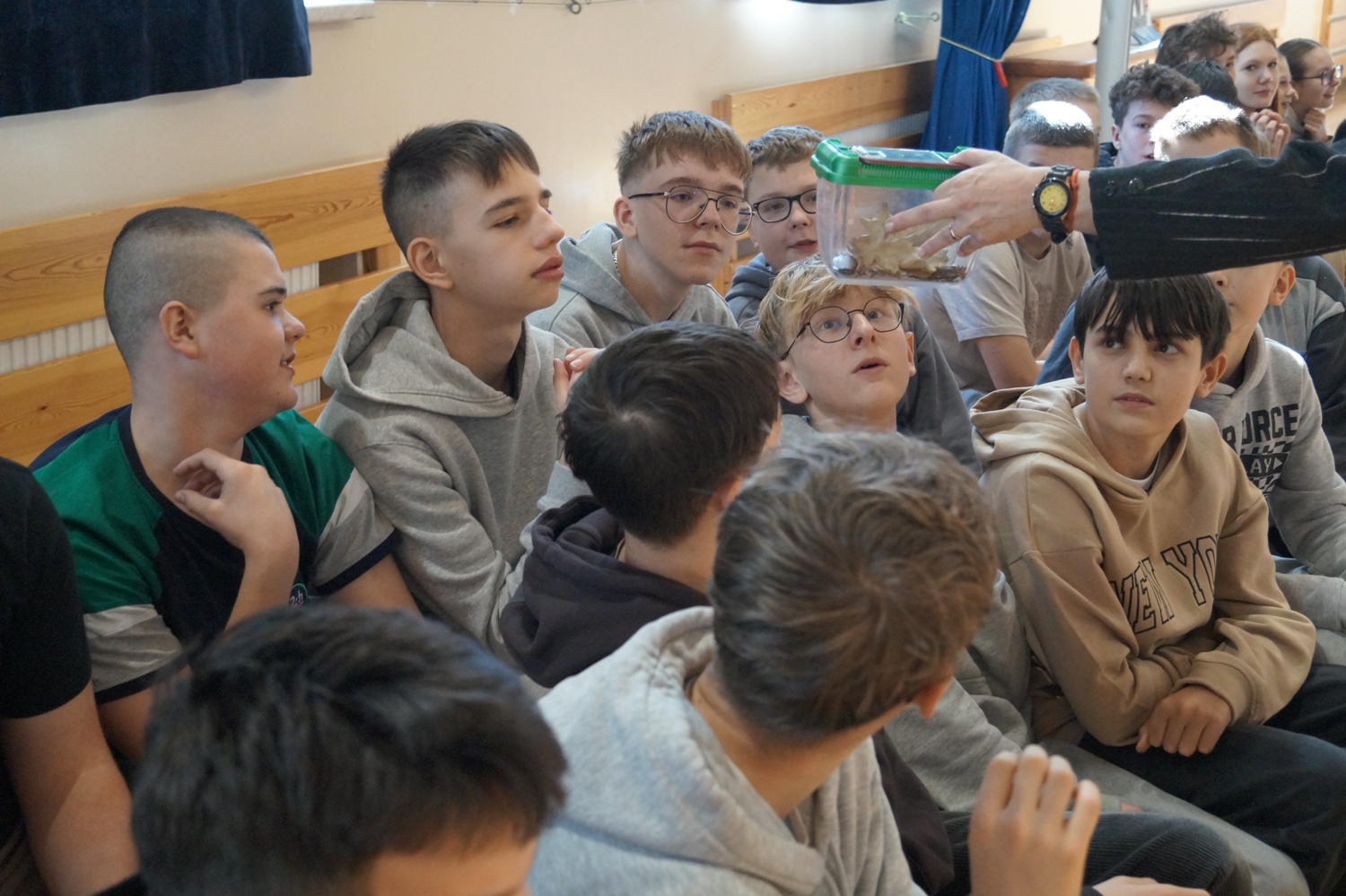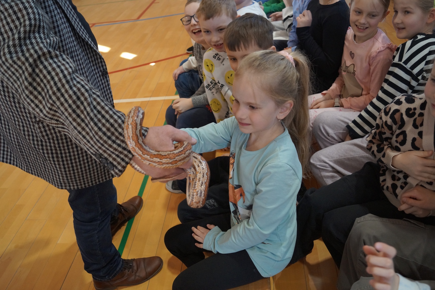 Podczas spotkania uczniowie mieli okazję poznać bliżej fascynujący świat zwierząt egzotycznych. Prowadząca opowiadała o ich budowie, sposobie życia, środowisku występowania oraz ciekawostkach związanych z tymi zwierzętami. Największe zainteresowanie wzbudziła możliwość zobaczenia tych zwierząt z bliska. Niektórzy uczniowie zdecydowali się nawet je pogłaskać. Była to dla wielu osób pierwsza okazja do tak bezpośredniego kontaktu z tymi niezwykłymi zwierzętami. Żywa lekcja przyrody była nie tylko interesującym doświadczeniem, ale także doskonałą okazją do poszerzenia wiedzy w atrakcyjny i praktyczny sposób. Spotkanie wzbudziło wiele emocji, ciekawości i uśmiechu wśród uczestników.